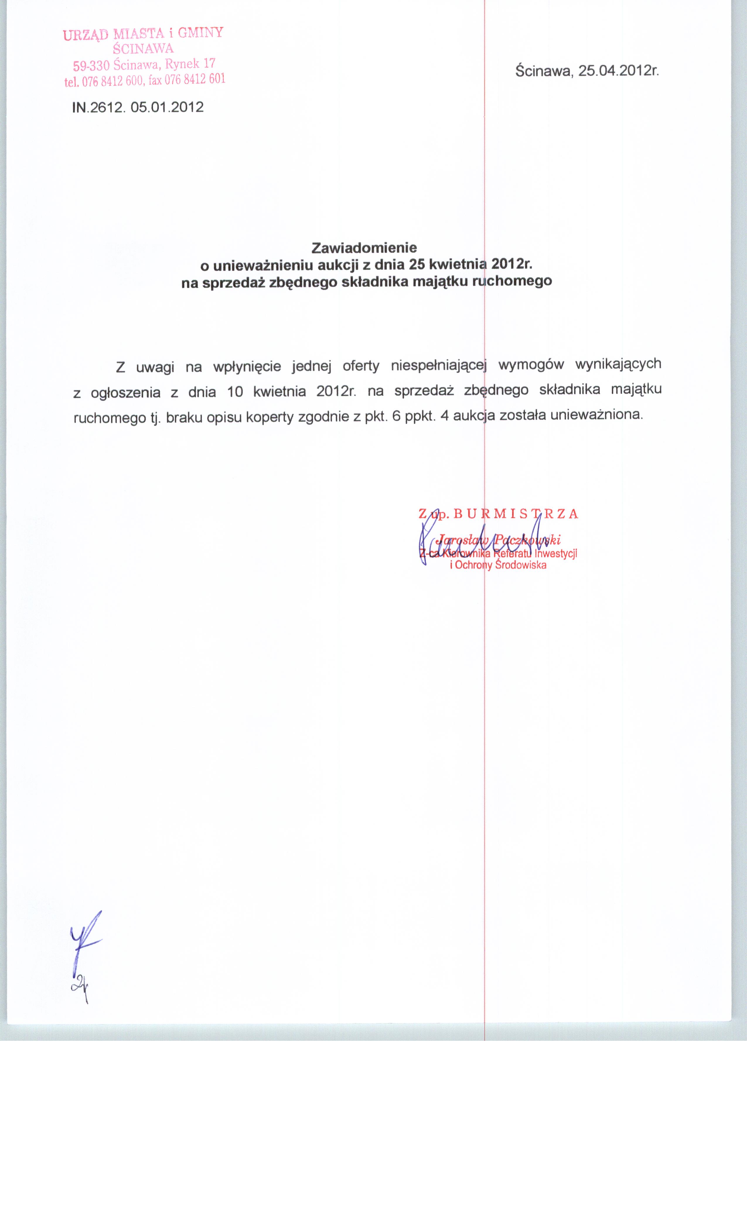 Tytuł dokumentu: | Informacja o unieważnieniu aukcji z dnia 25.04.2012r. | |