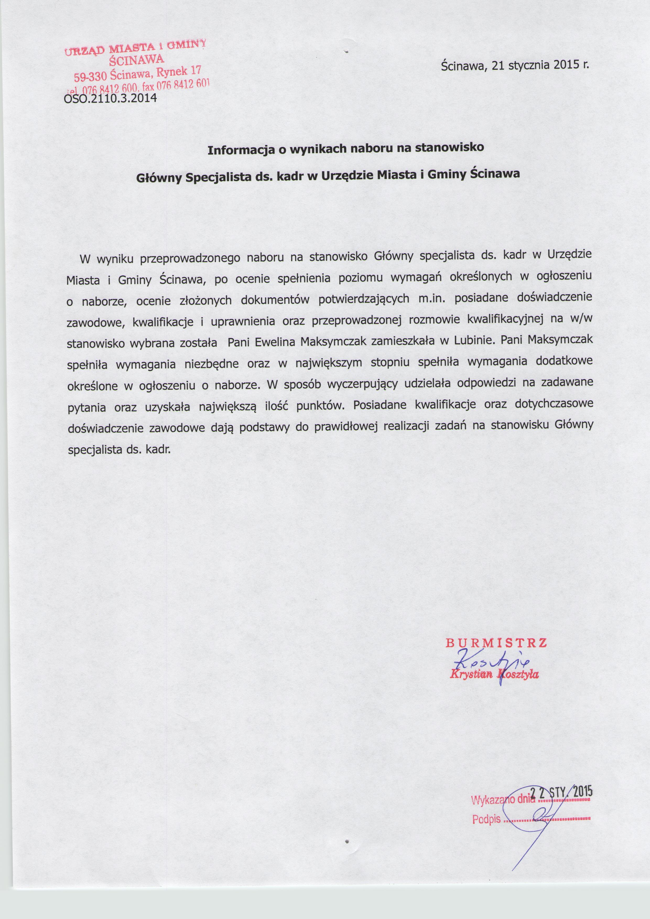 Tytuł dokumentu: | Wyniki naboru na wolne stanowisko urzędnicze- Główny specjalista ds. kadr. | |