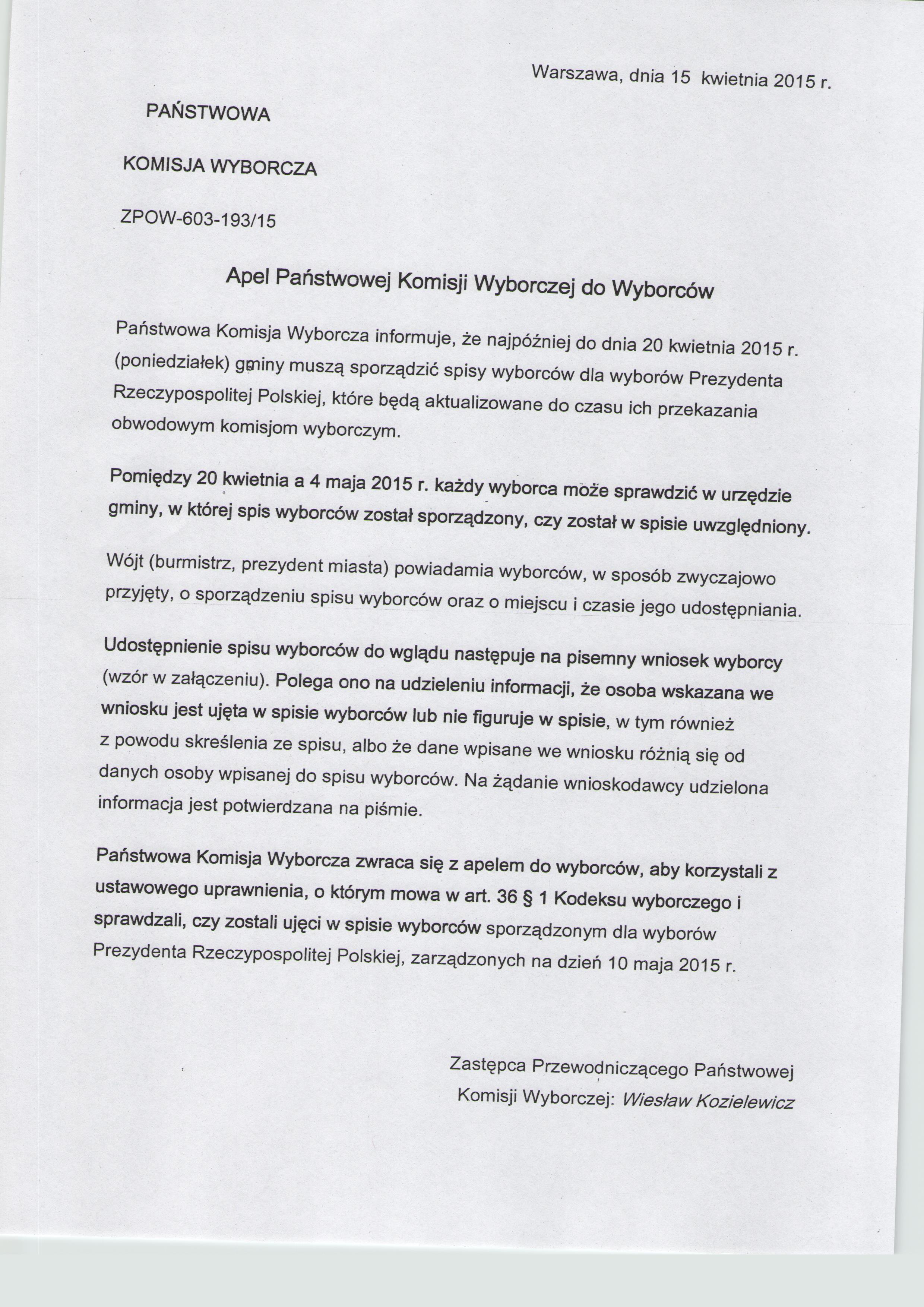 Apel Państwowej Komisji Wyborczej do Wyborców