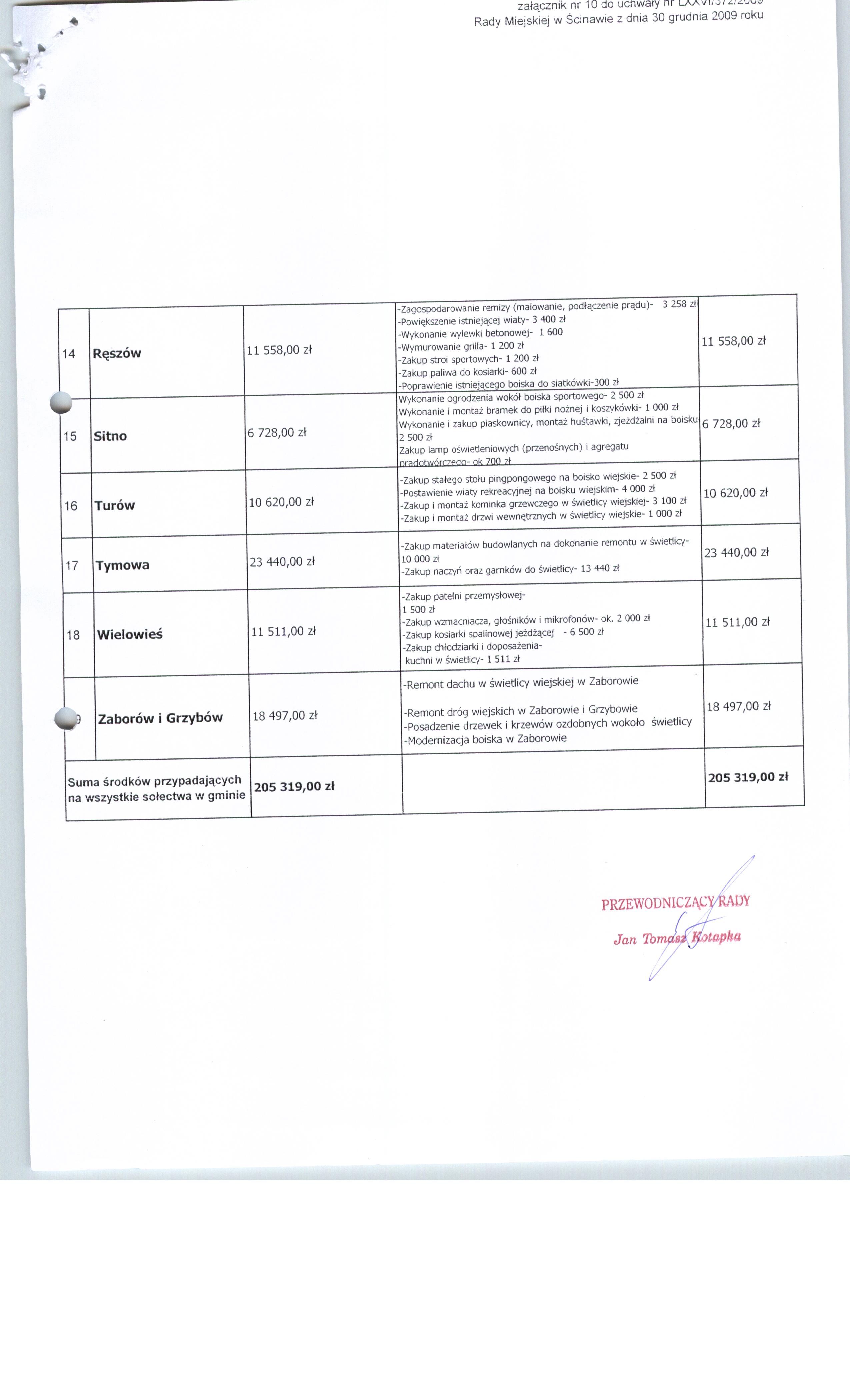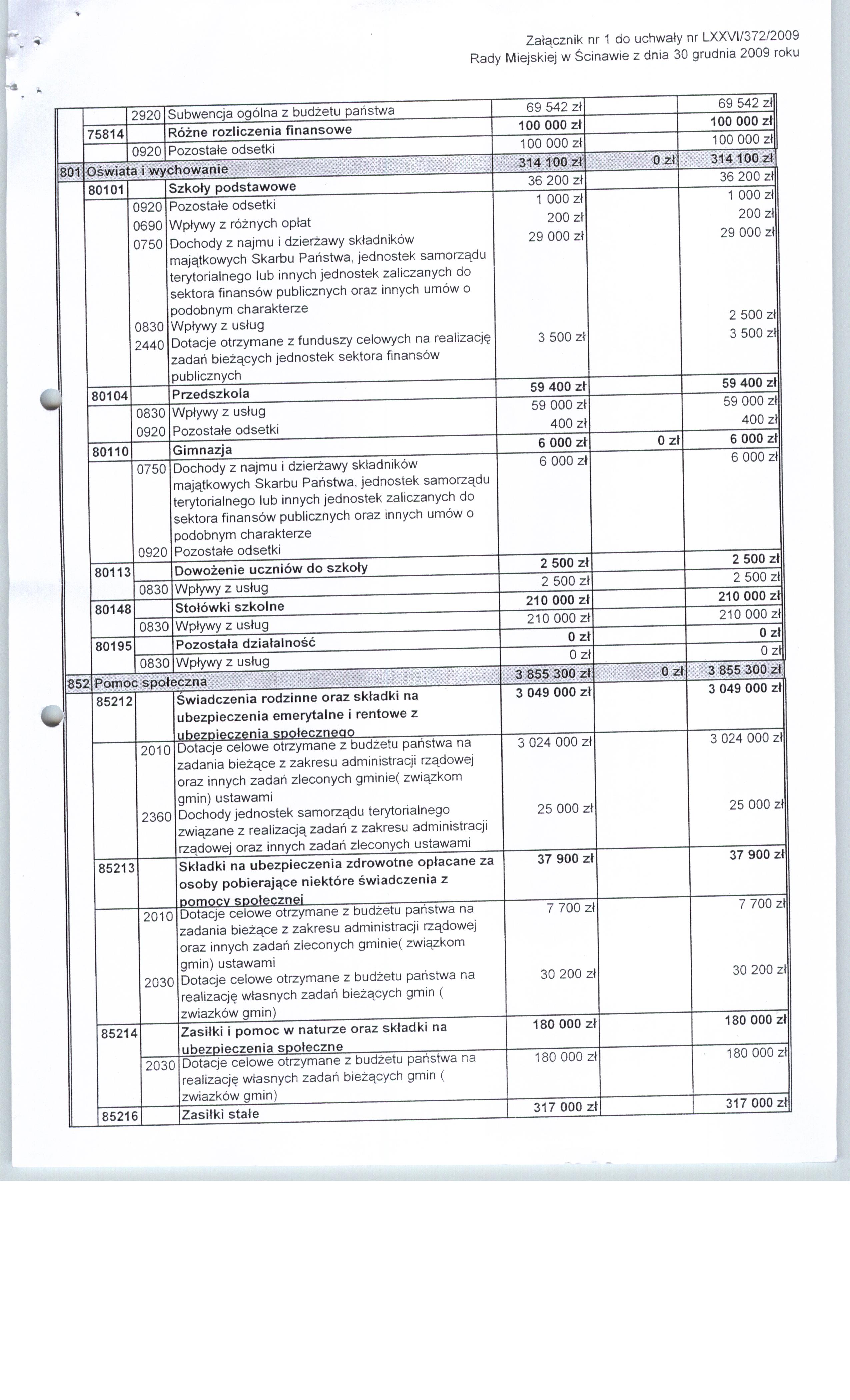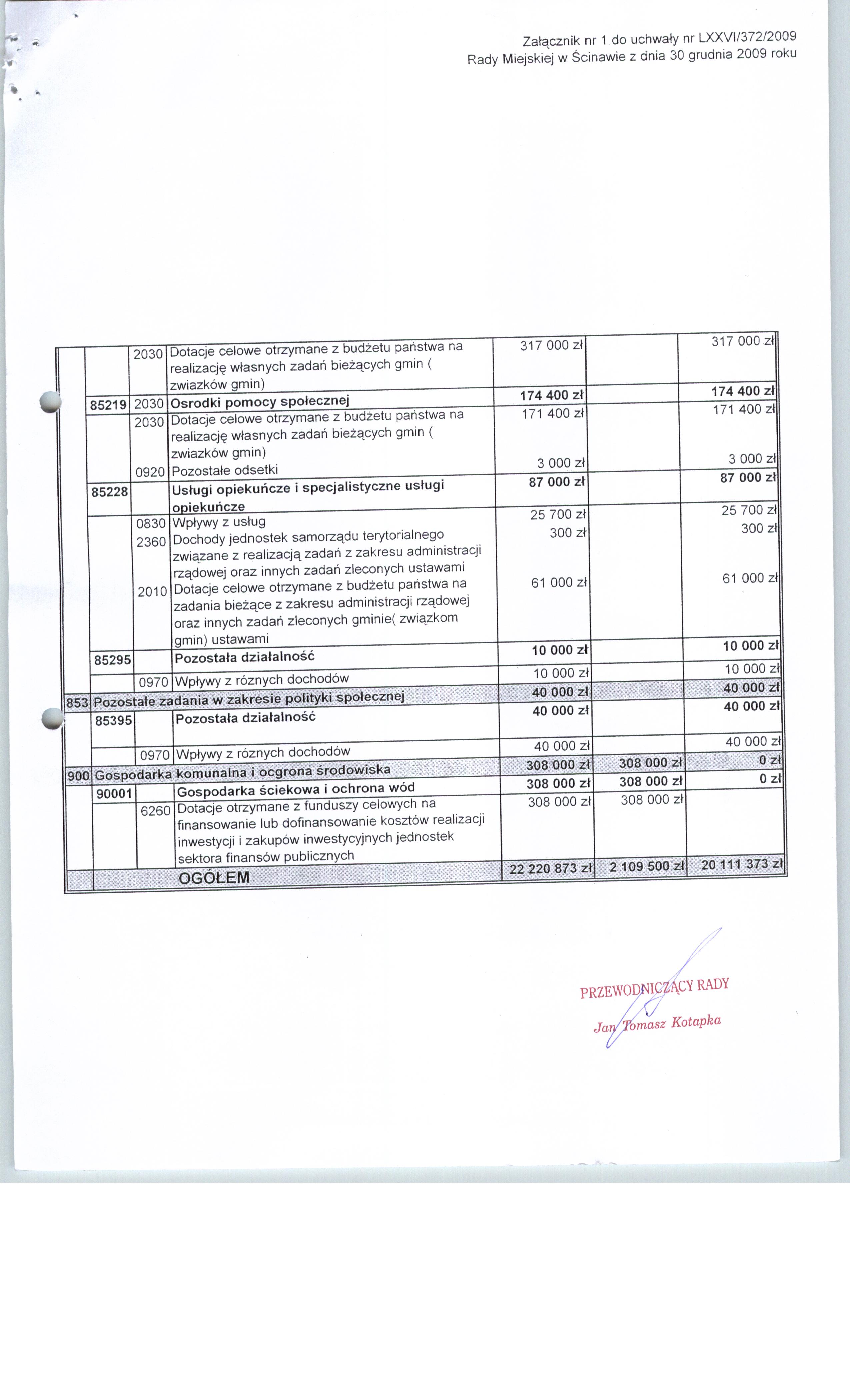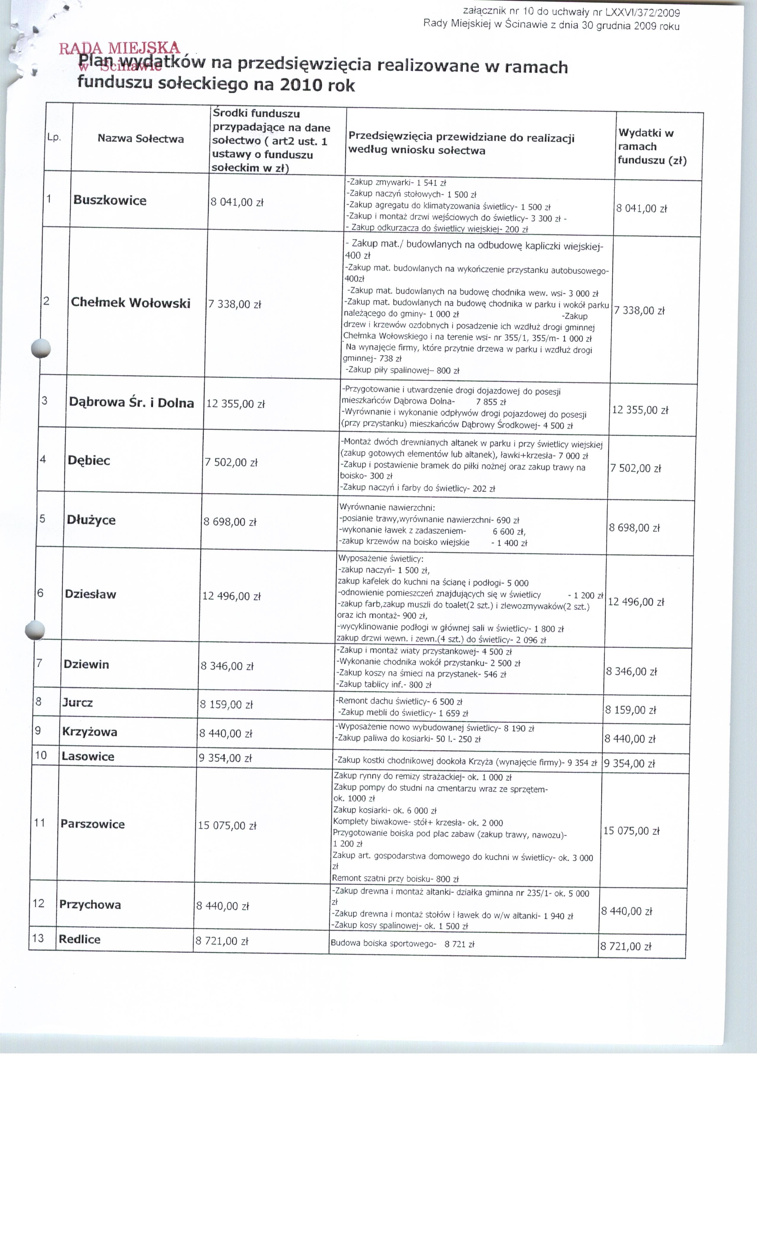 Uchwała nr LXXVI/372/2009 Rady Miejskiej w Ścinawie z dnia 30 grudnia 2009