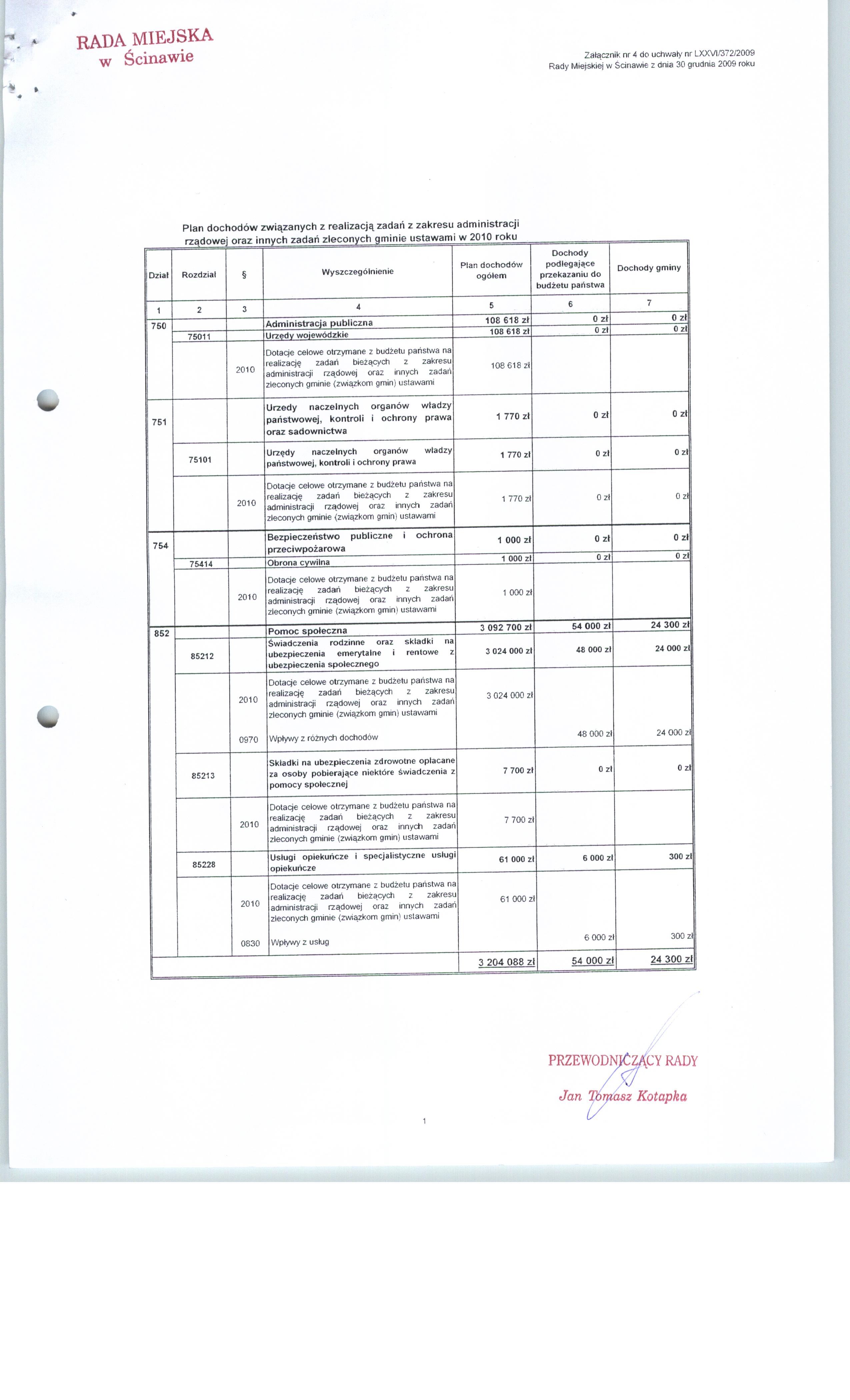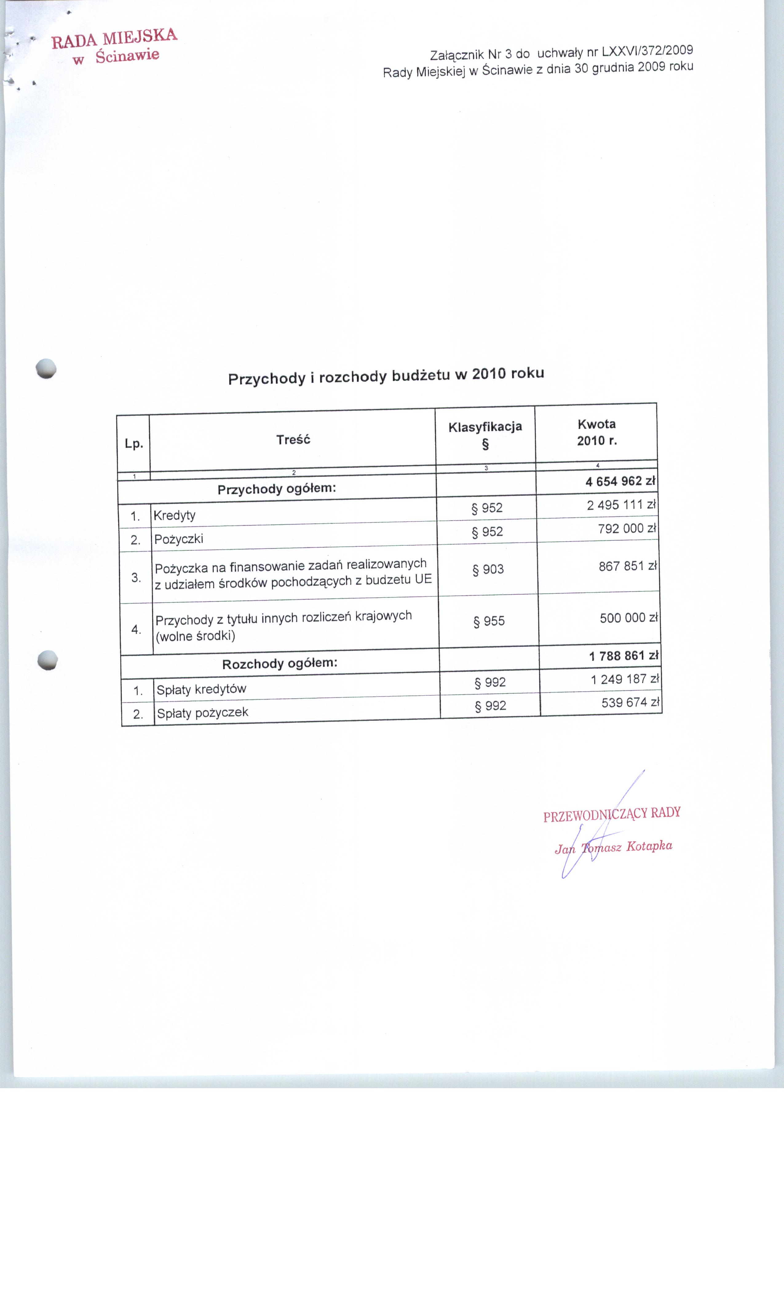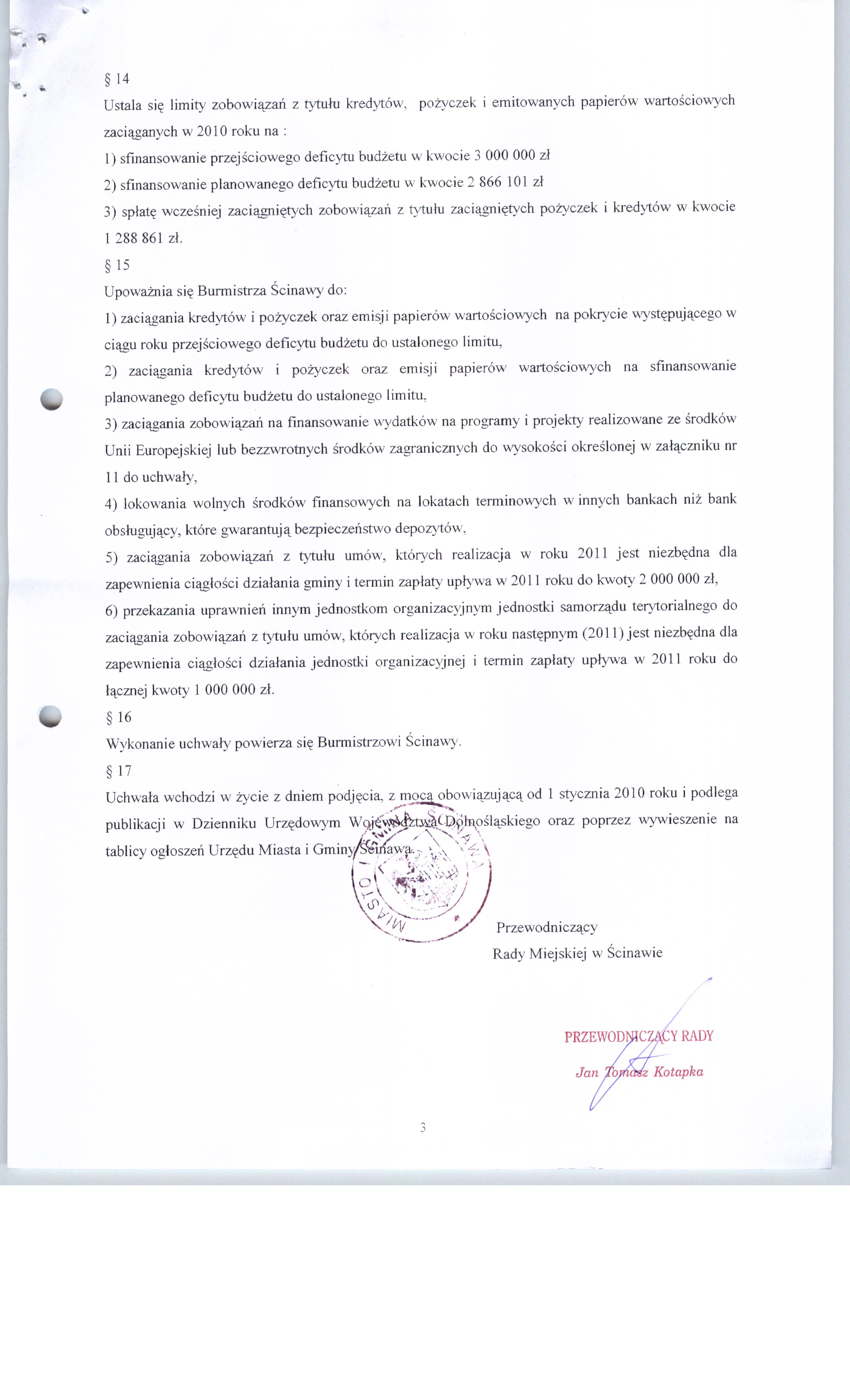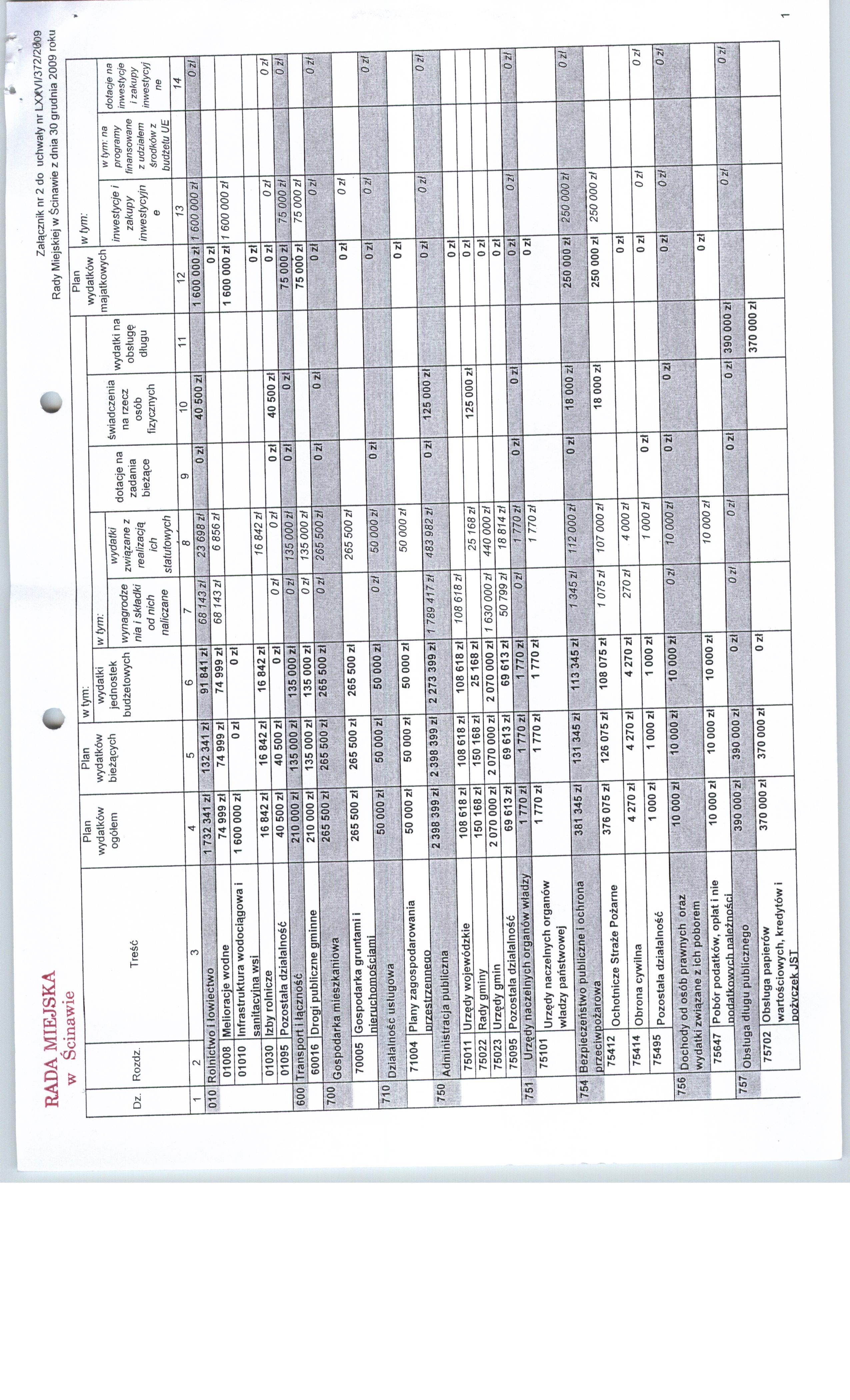 Uchwała nr LXXVI/372/2009 Rady Miejskiej w Ścinawie z dnia 30 grudnia 2009