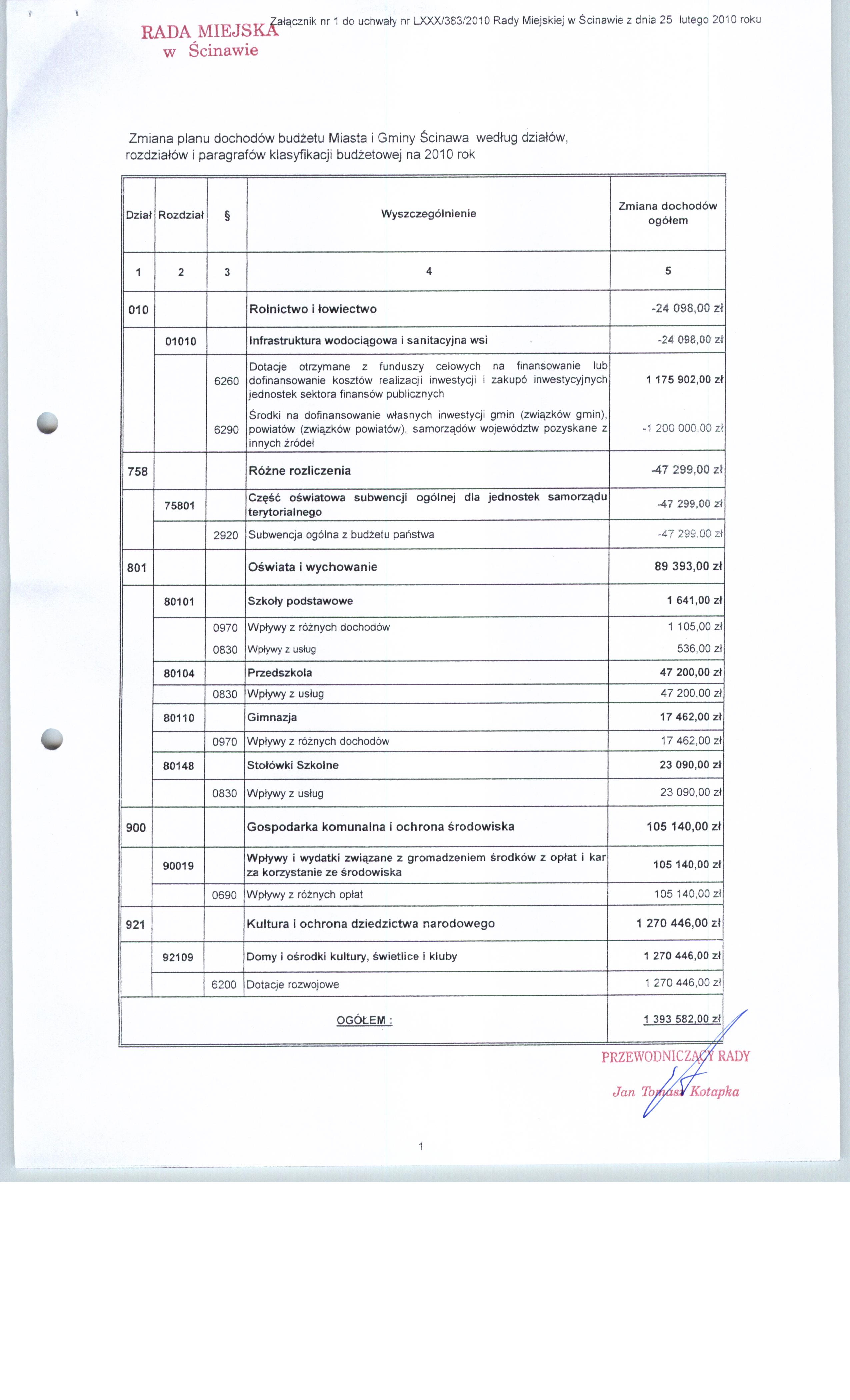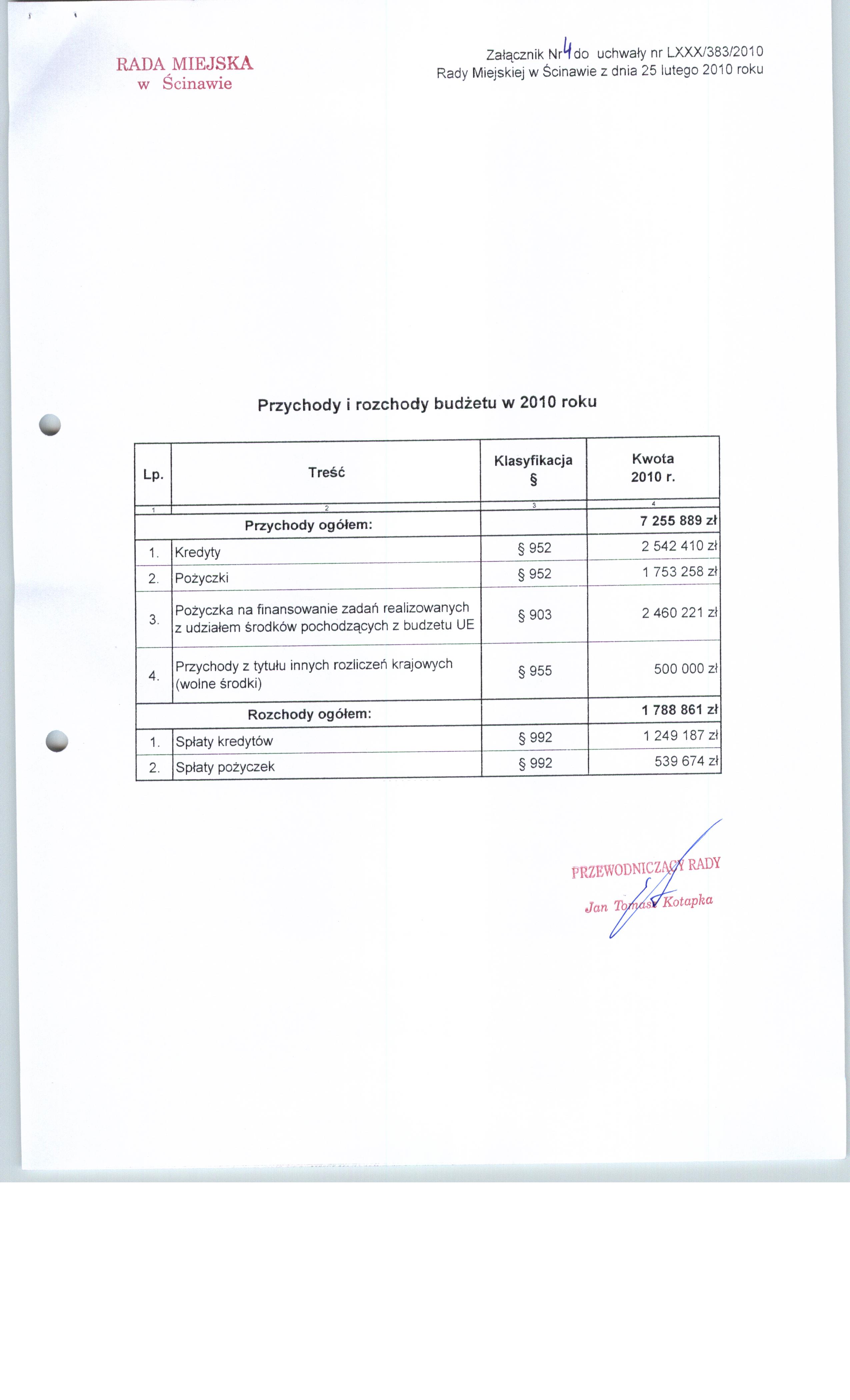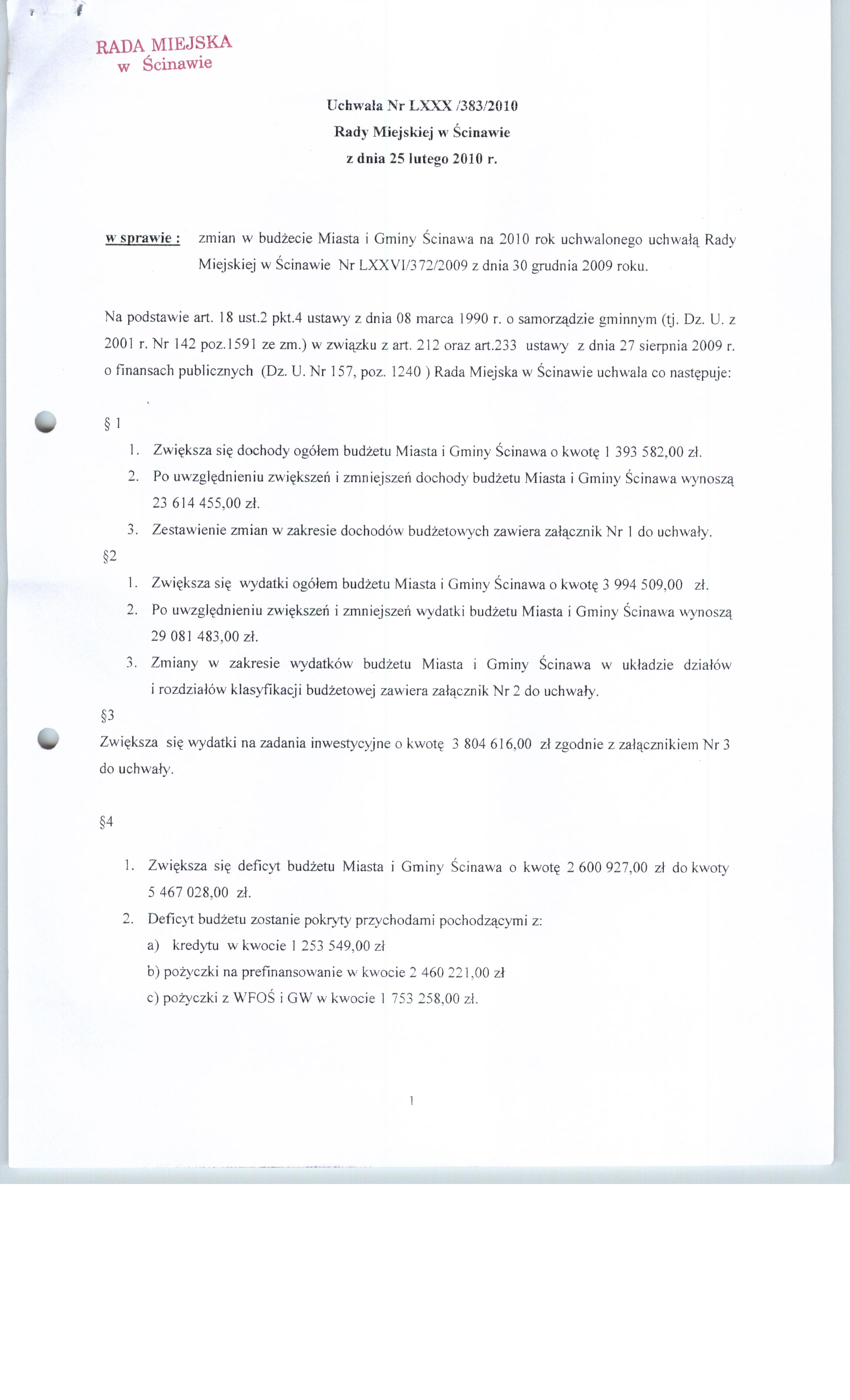 Uchwała Nr LXXX/383/10 Rady Miejskiej w Ścinawie z dnia 25 lutego 2010r.