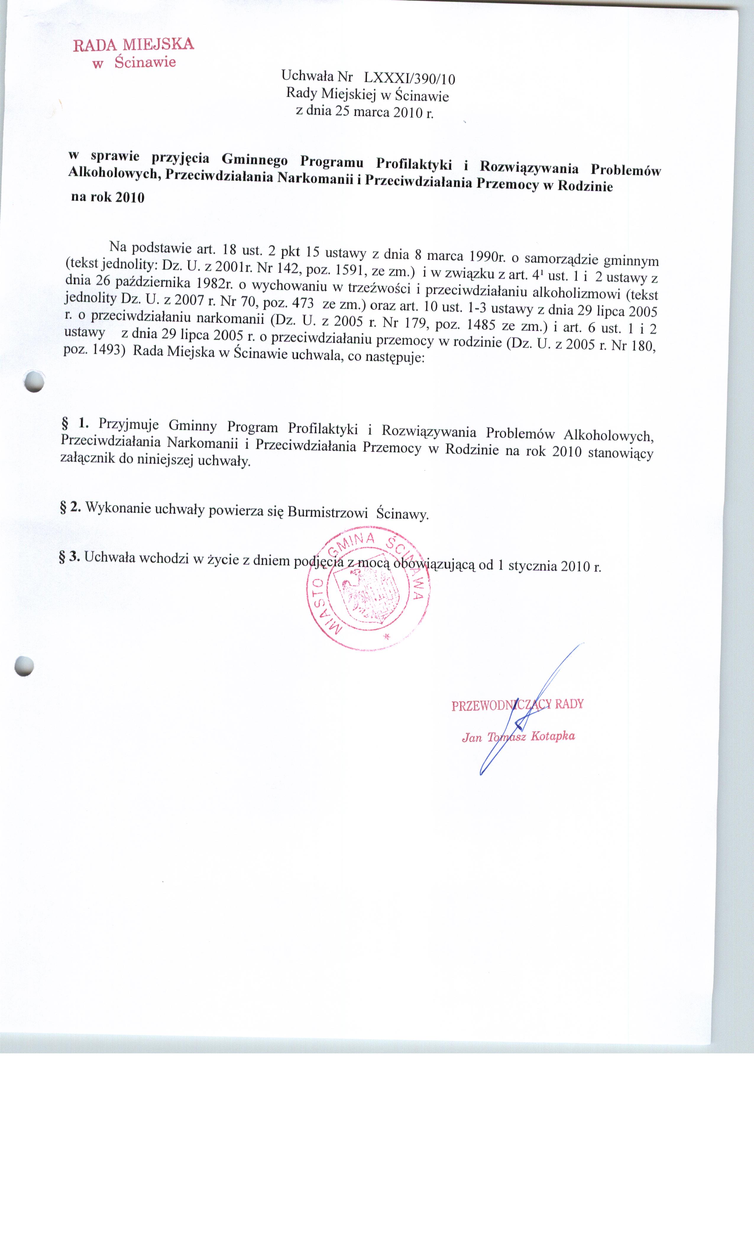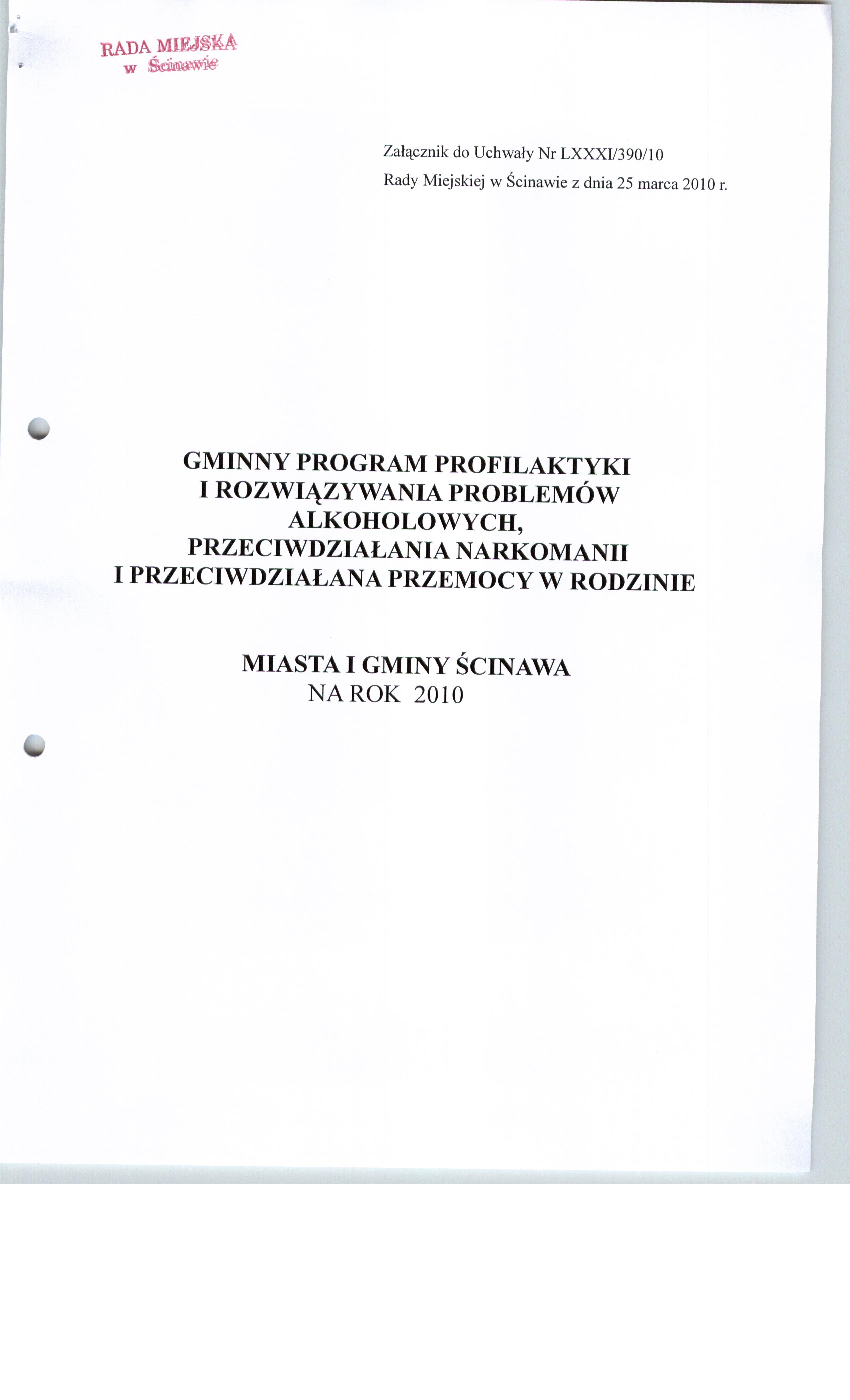 Uchwała Nr LXXXI/390/10 Rady Miejskiej w Ścinawie z dnia 25 marca 2010r.