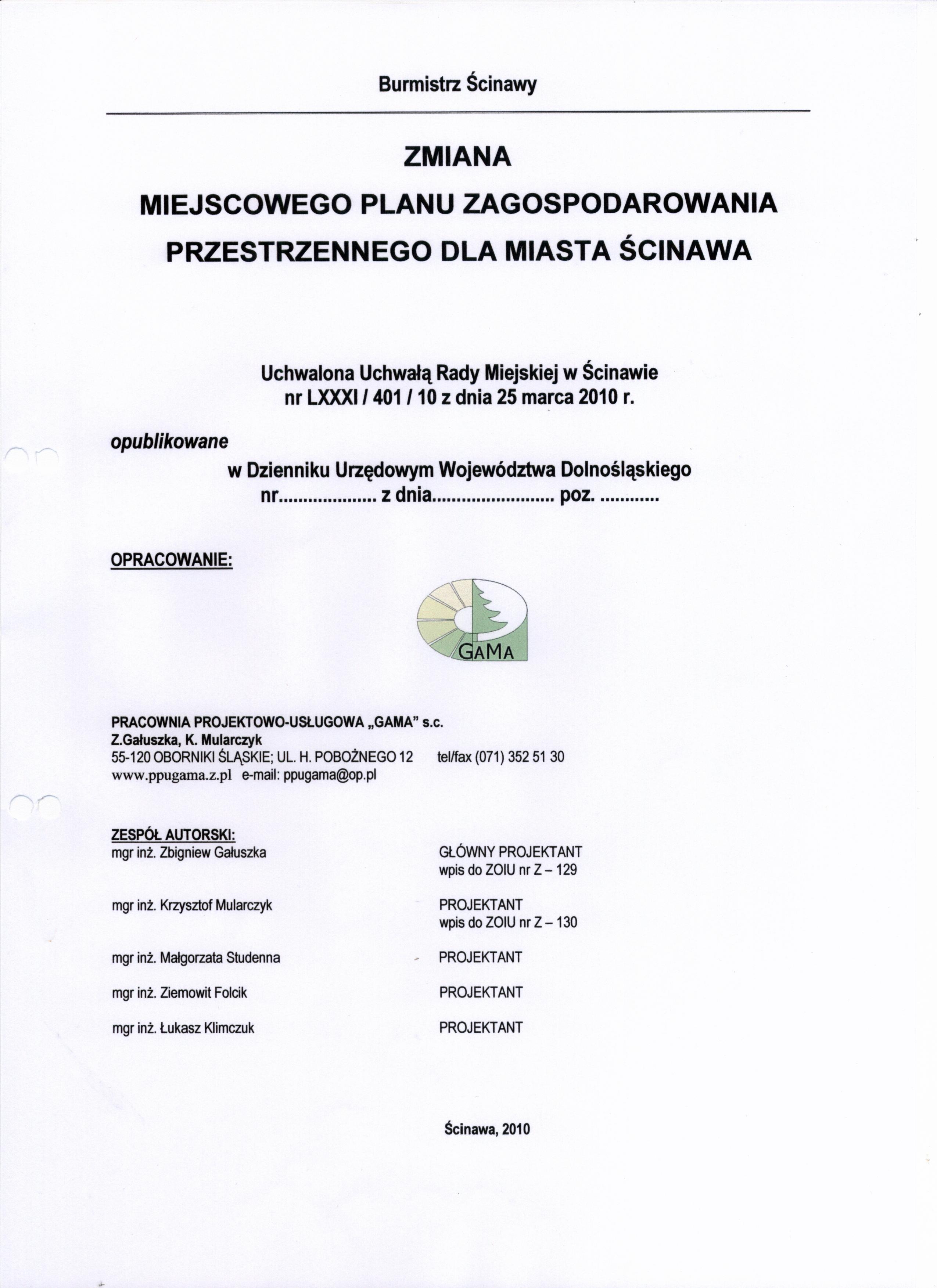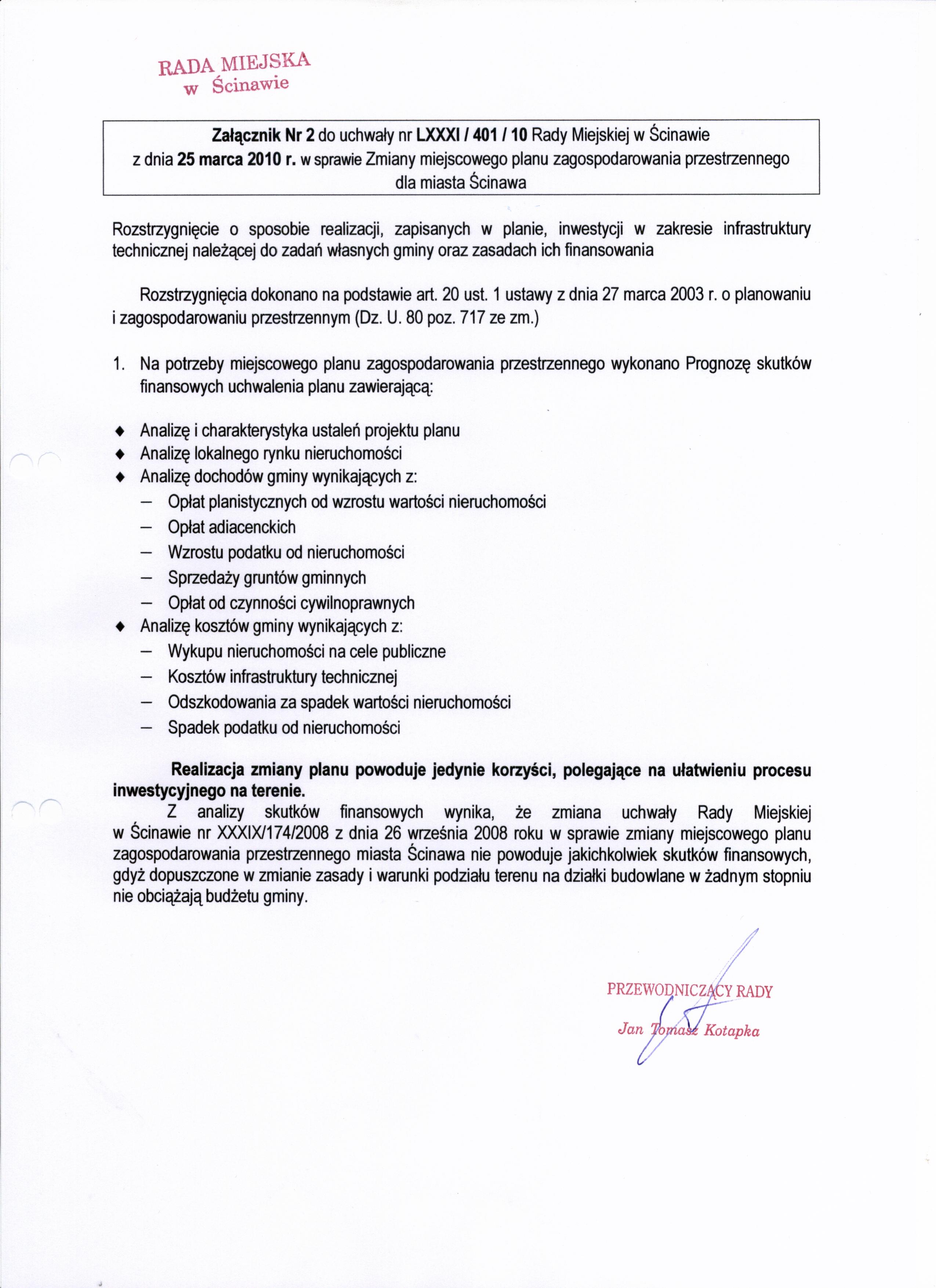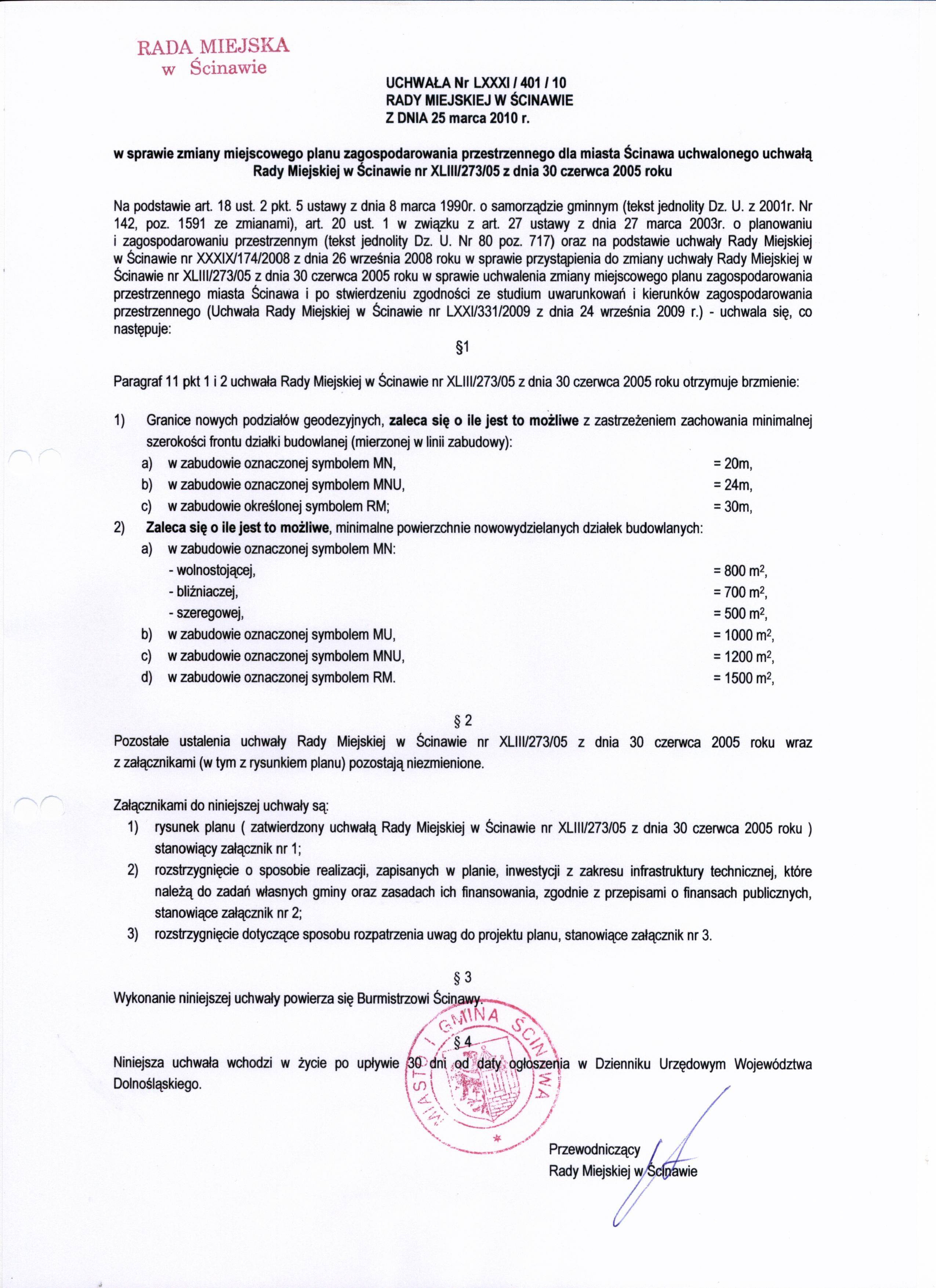 Uchwała Nr LXXXI/401/10 Rady Miejskiej w Ścinawie z dnia 25 marca 2010r.