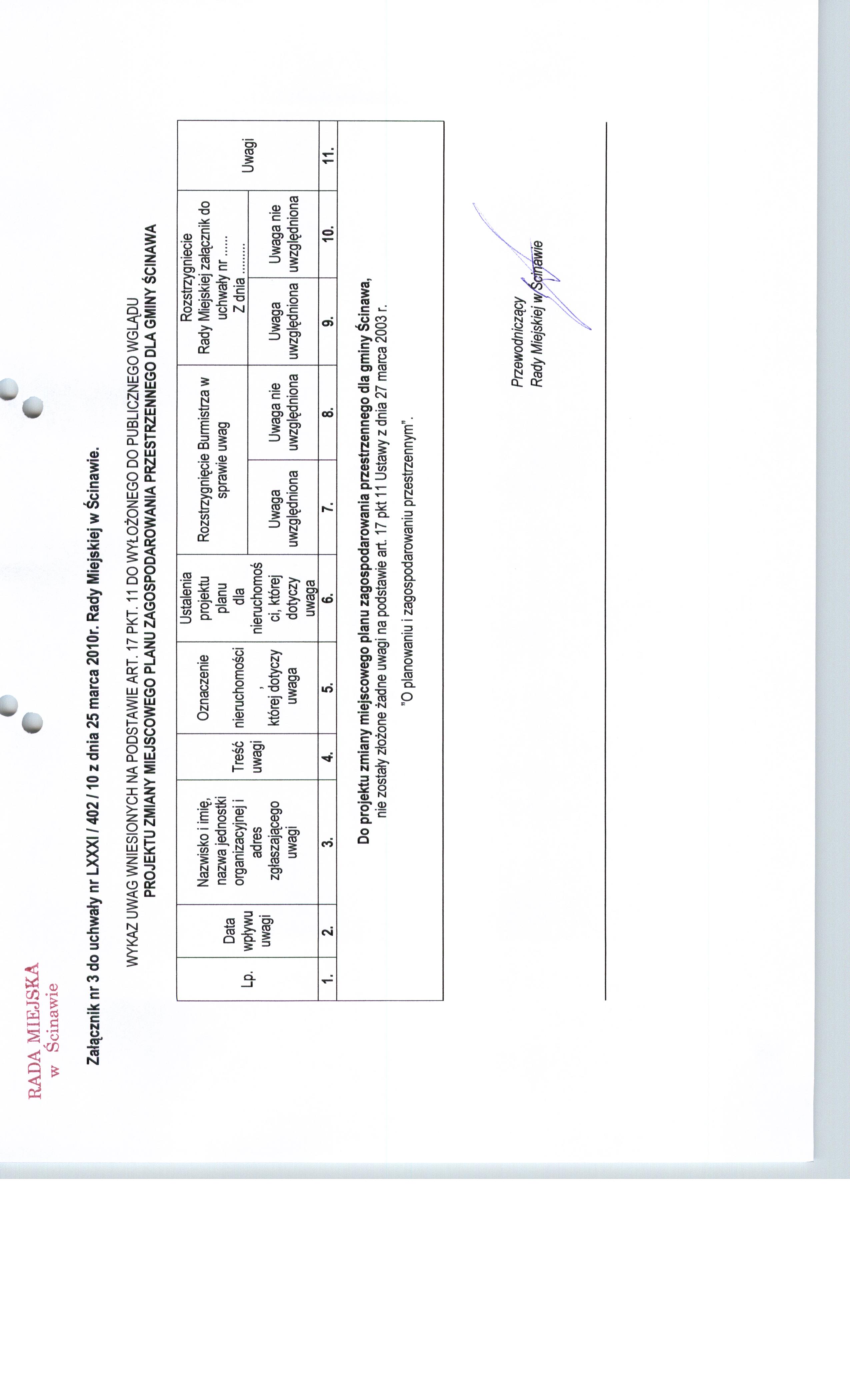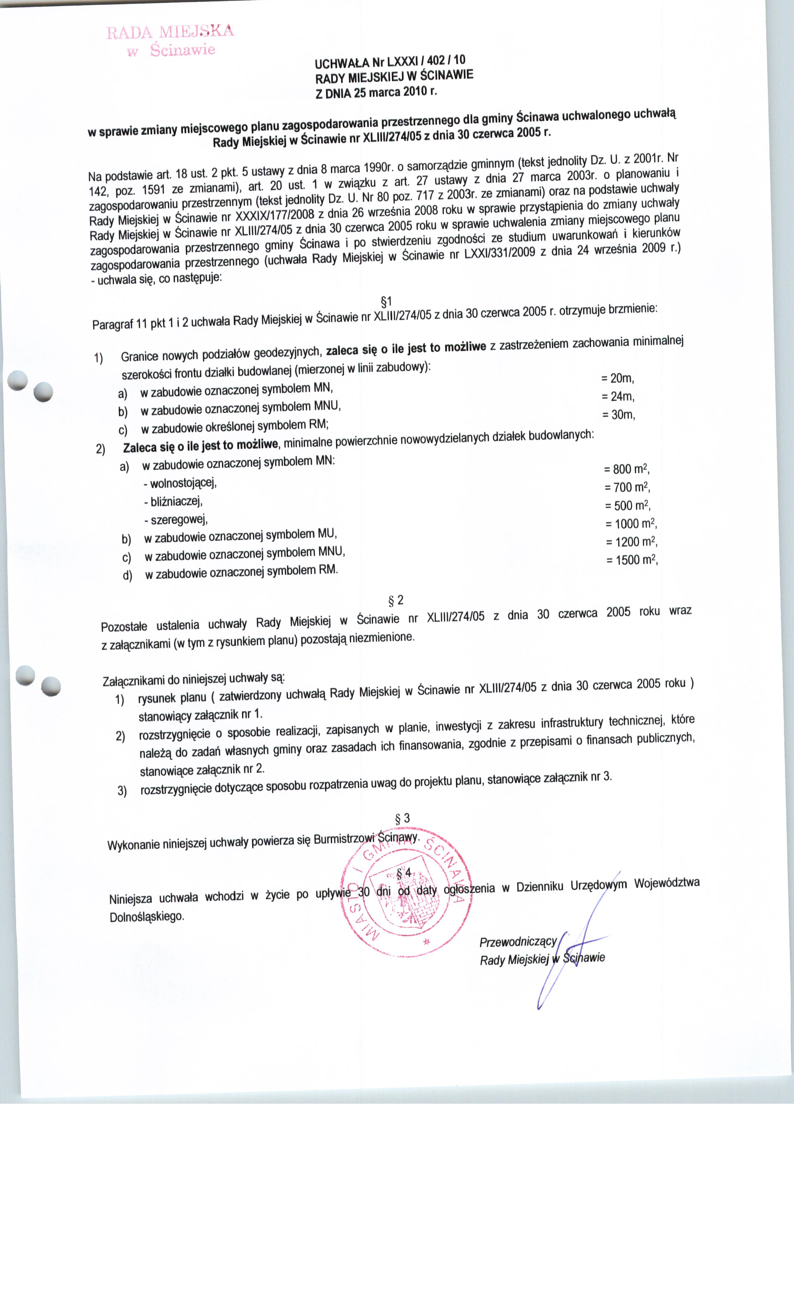 Uchwała Nr LXXXI/402/10 Rady Miejskiej w Ścinawie z dnia 25 marca 2010r.