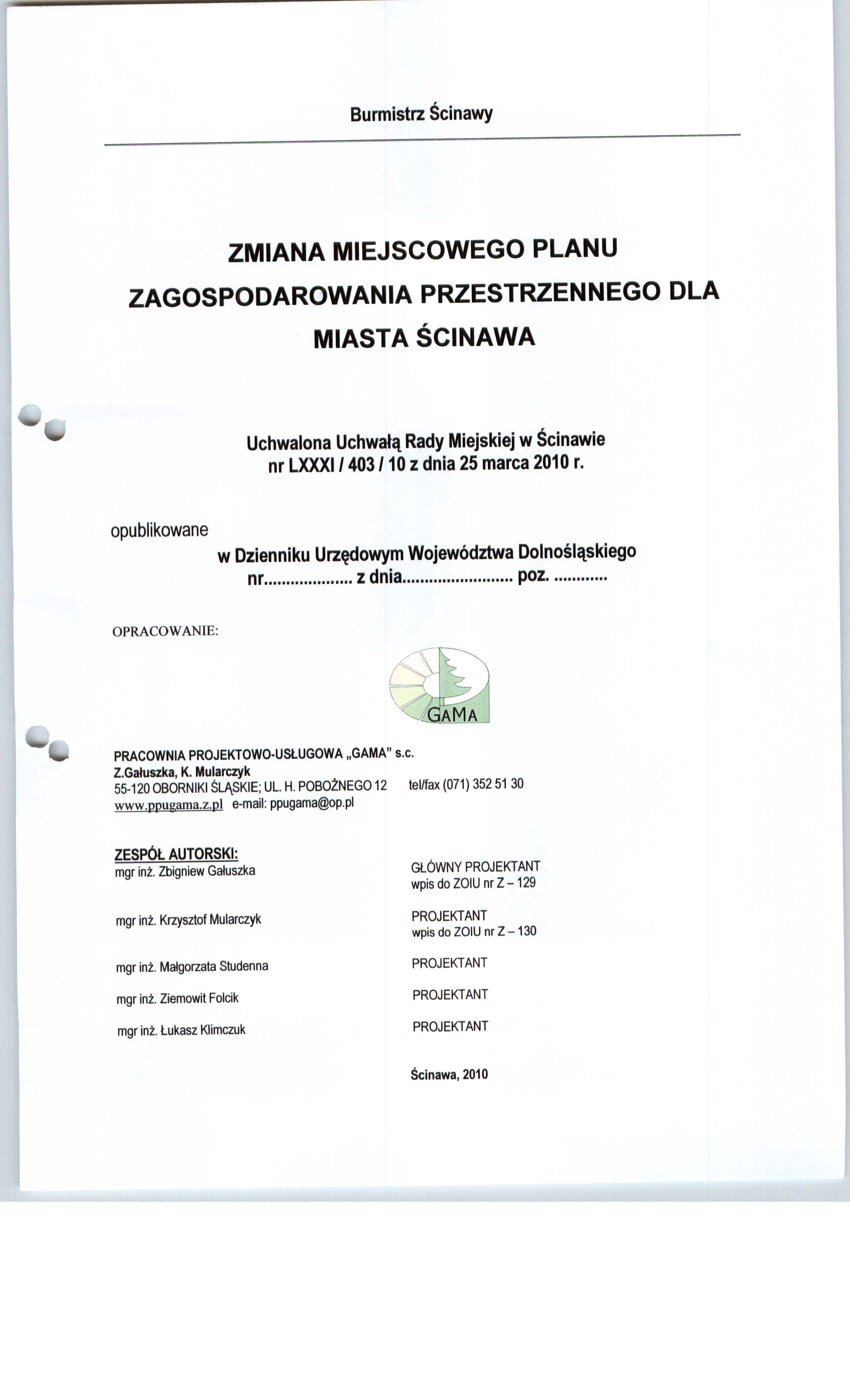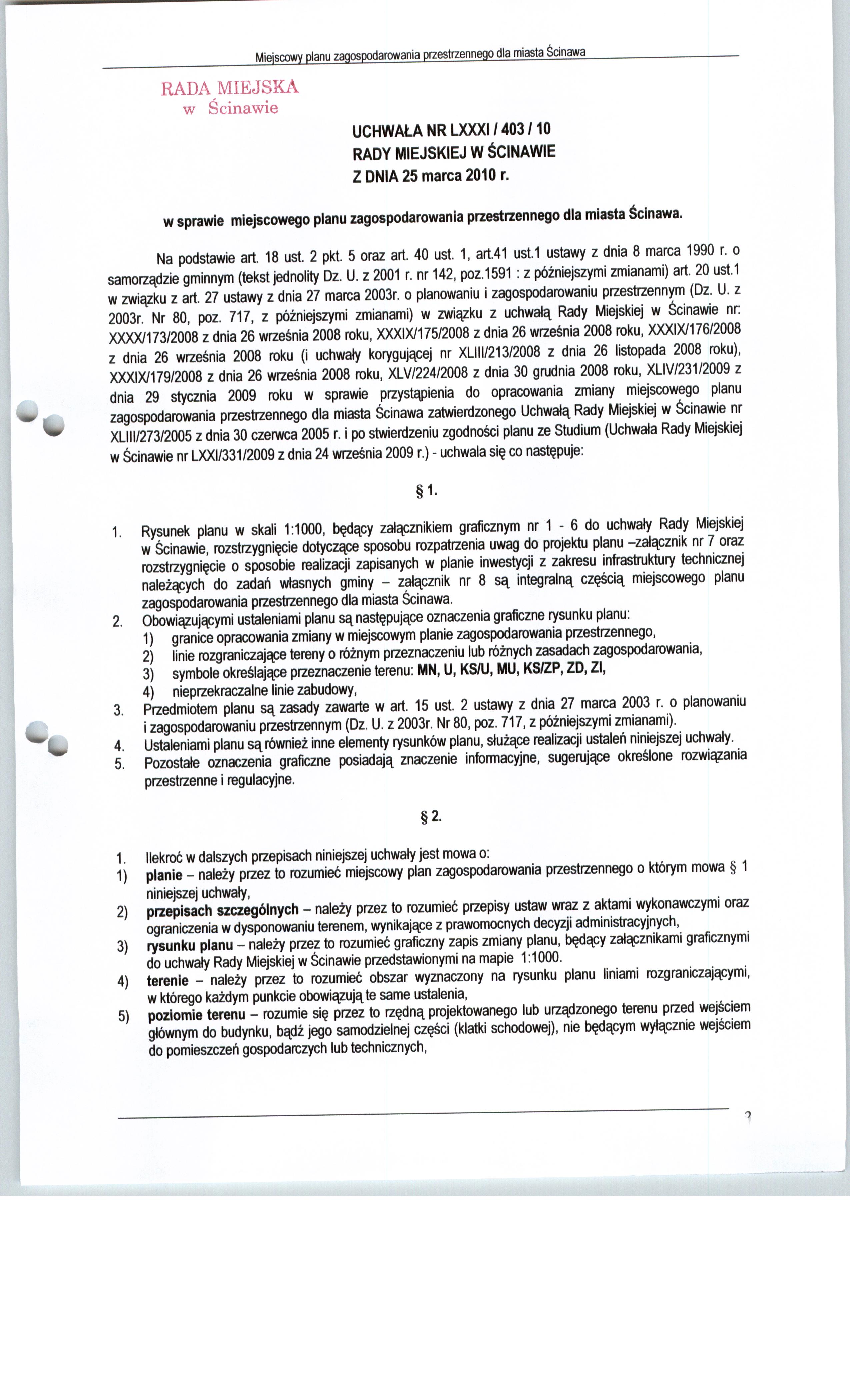 Uchwała Nr LXXXI/403/10 Rady Miejskiej w Ścinawie z dnia 25 marca 2010r.