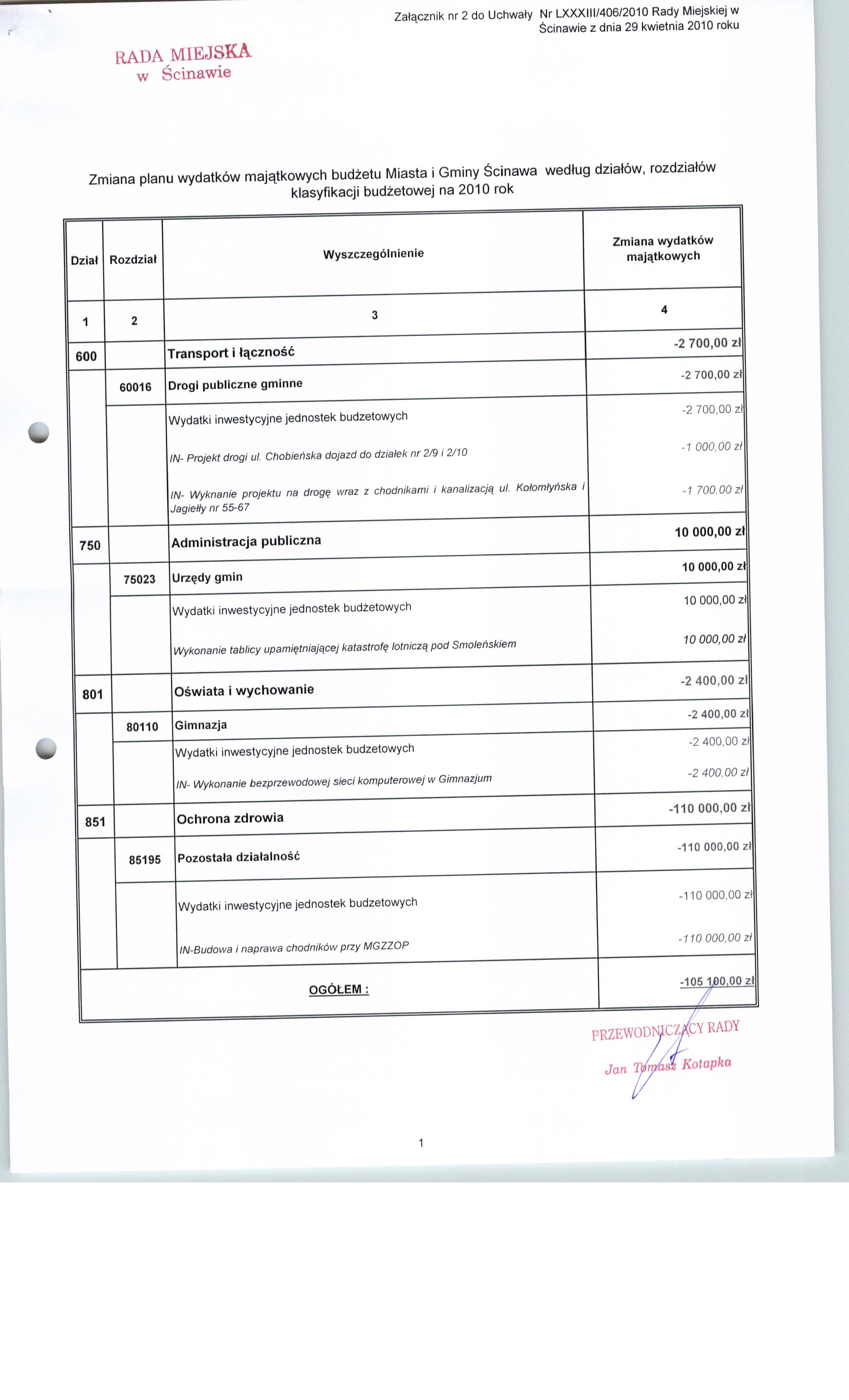Uchwała Nr LXXXIII/406/10 Rady Miejskiej w Ścinawie z dnia 29 kwietnia 2010r.