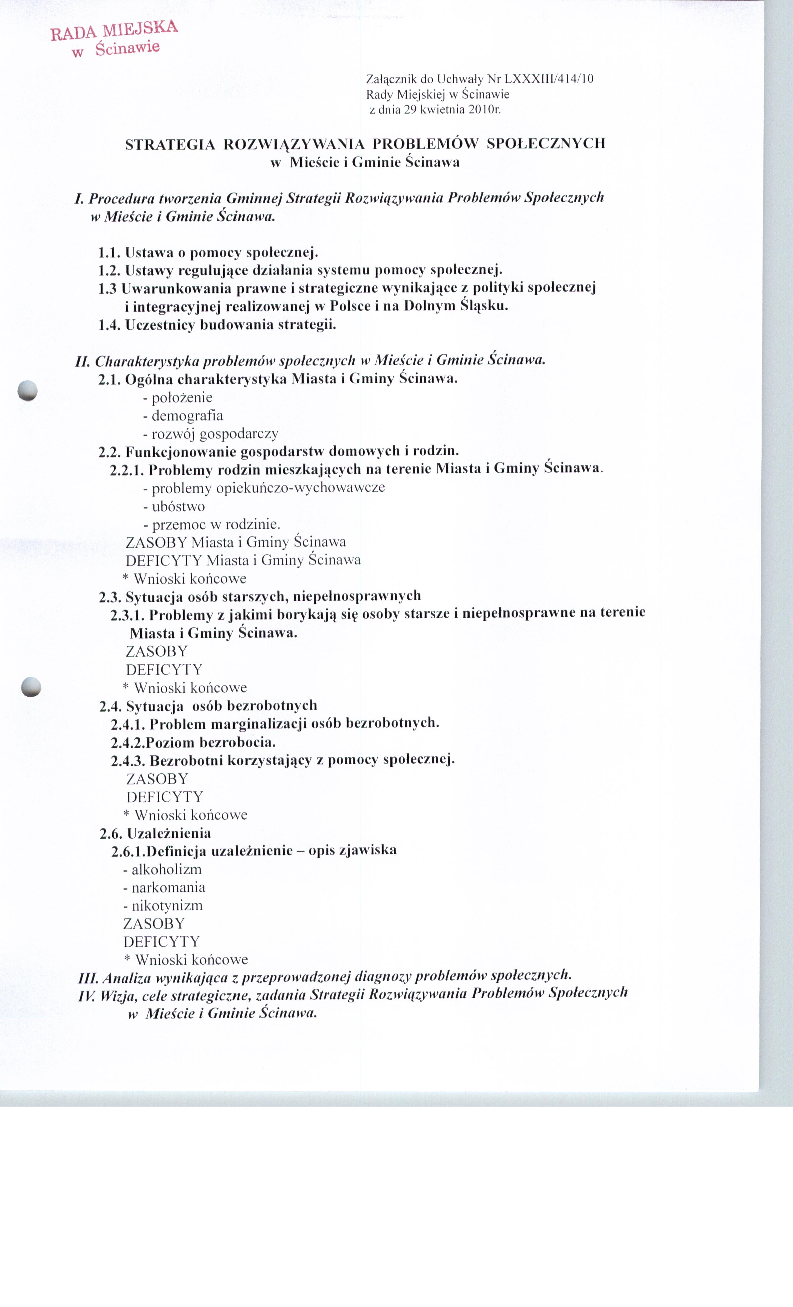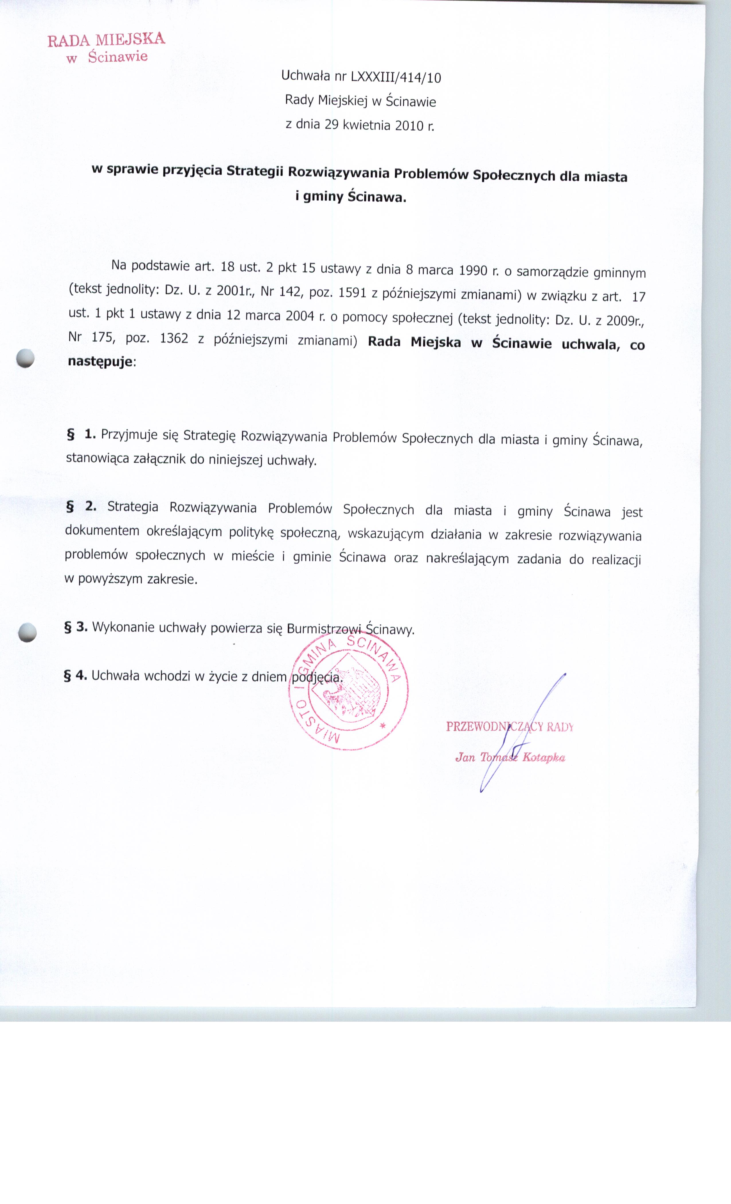Uchwała nr LXXXIII/414/10 Rady Miejskiej w Ścinawie z dnia 29 kwietnia 2010r.