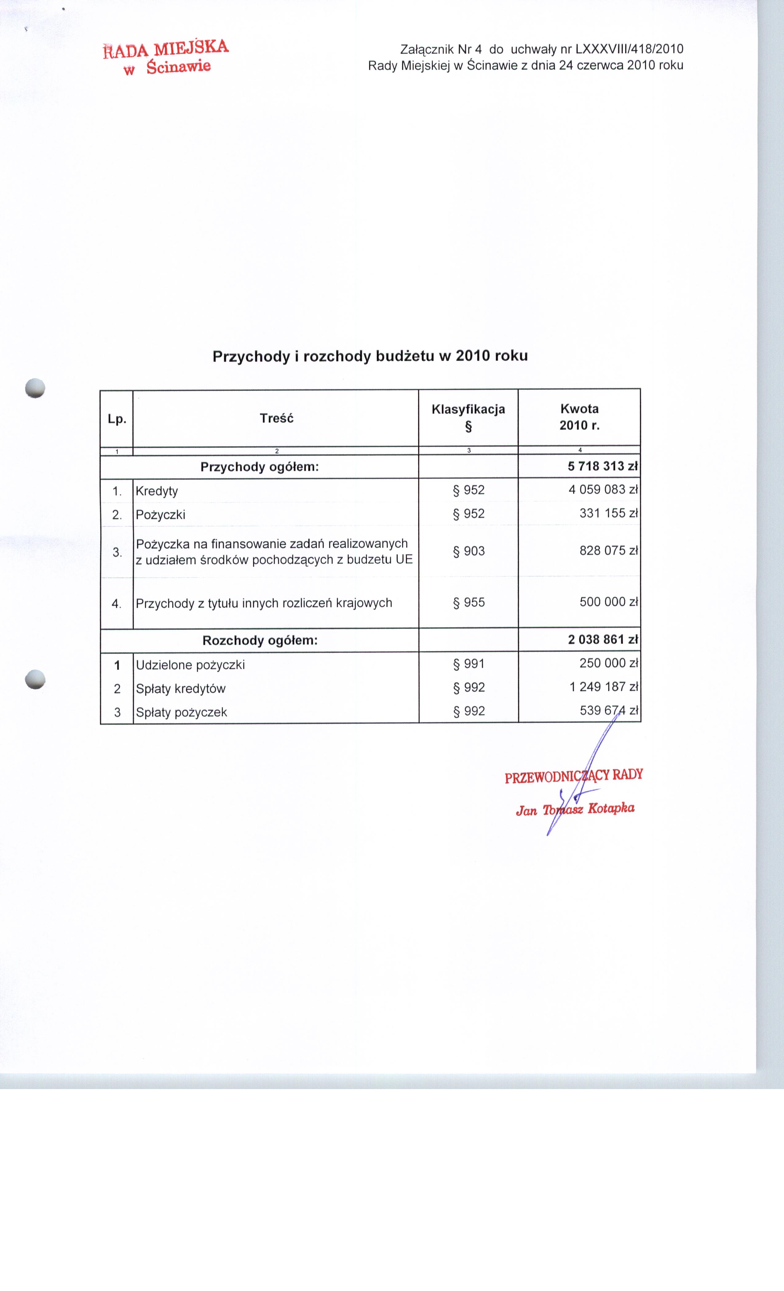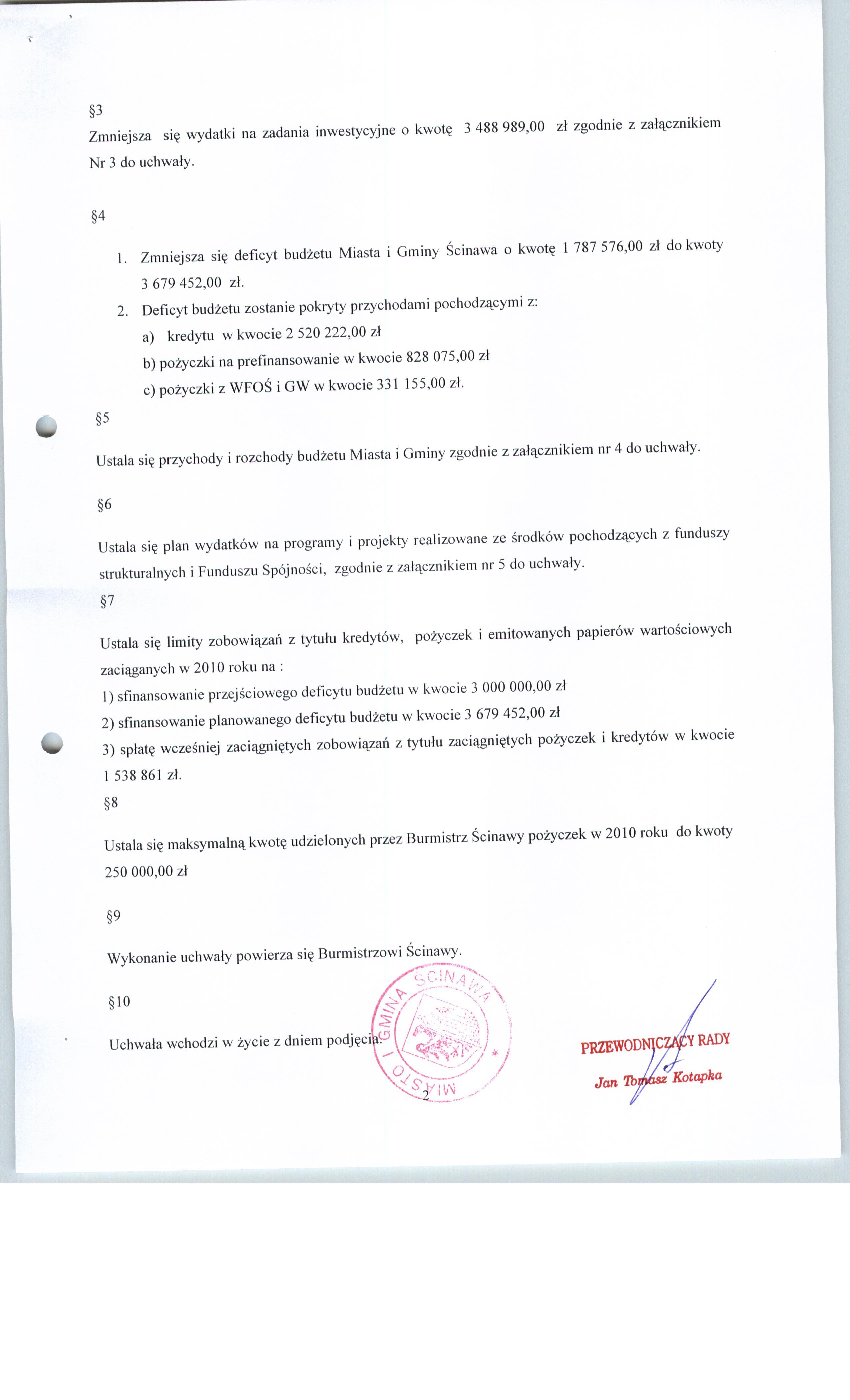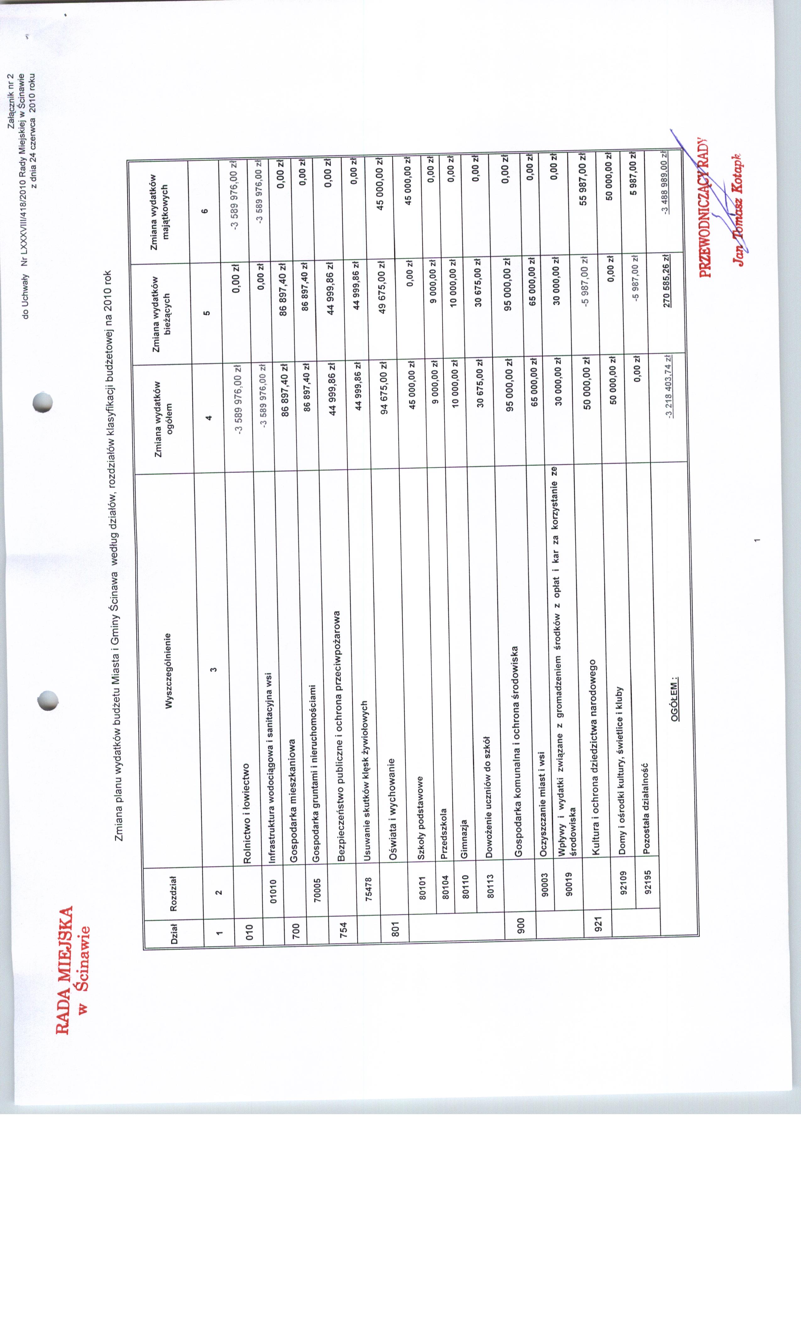 Uchwała nr LXXXVIII/418/10 Rady Miejskiej w Ścinawie z dnia 24 czerwca 2010r.