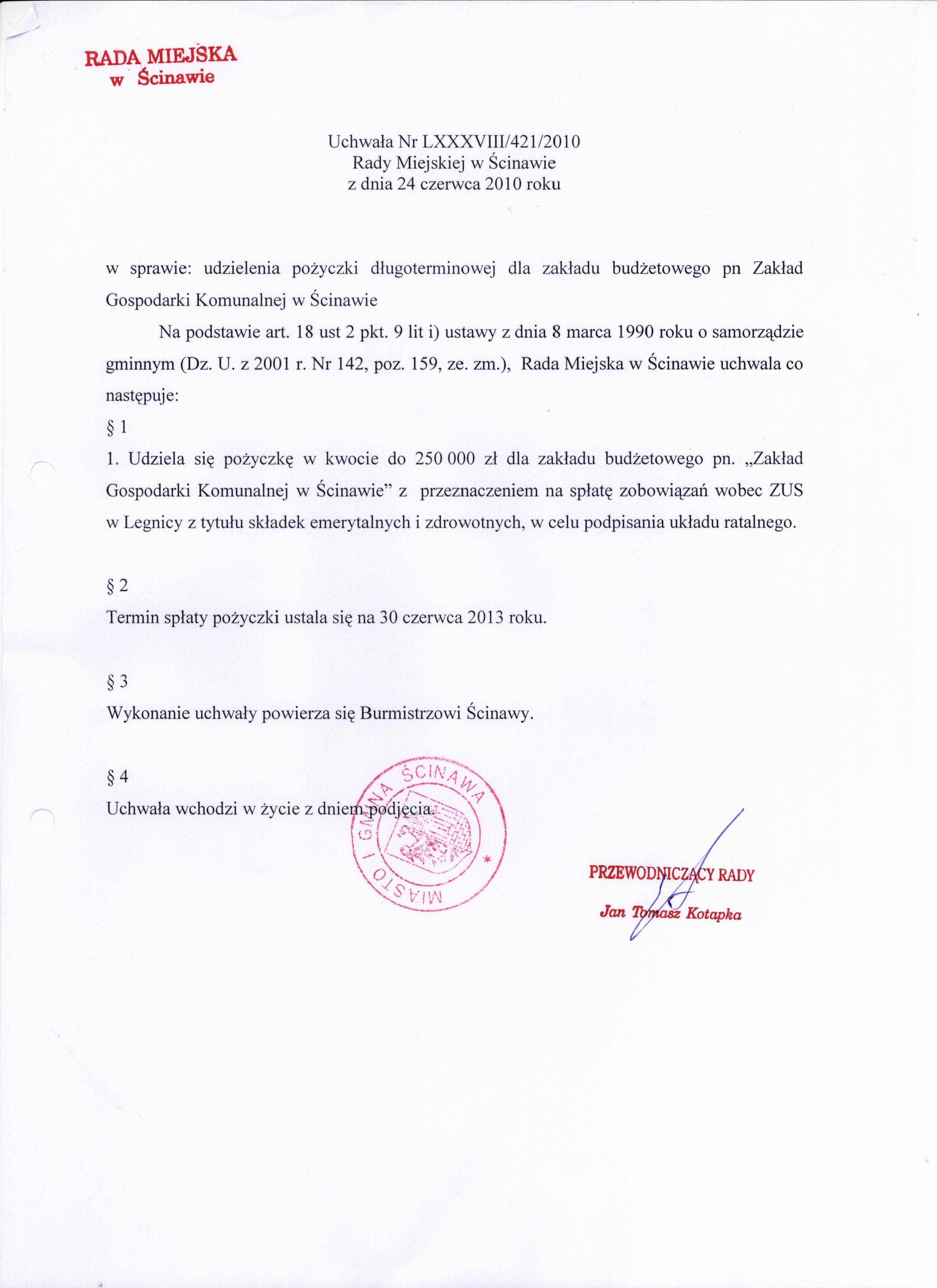 Tytuł dokumentu: | Uchwała nr LXXXVIII/421/10 Rady Miejskiej w Ścinawie z dnia 24 czerwca 2010r. | |