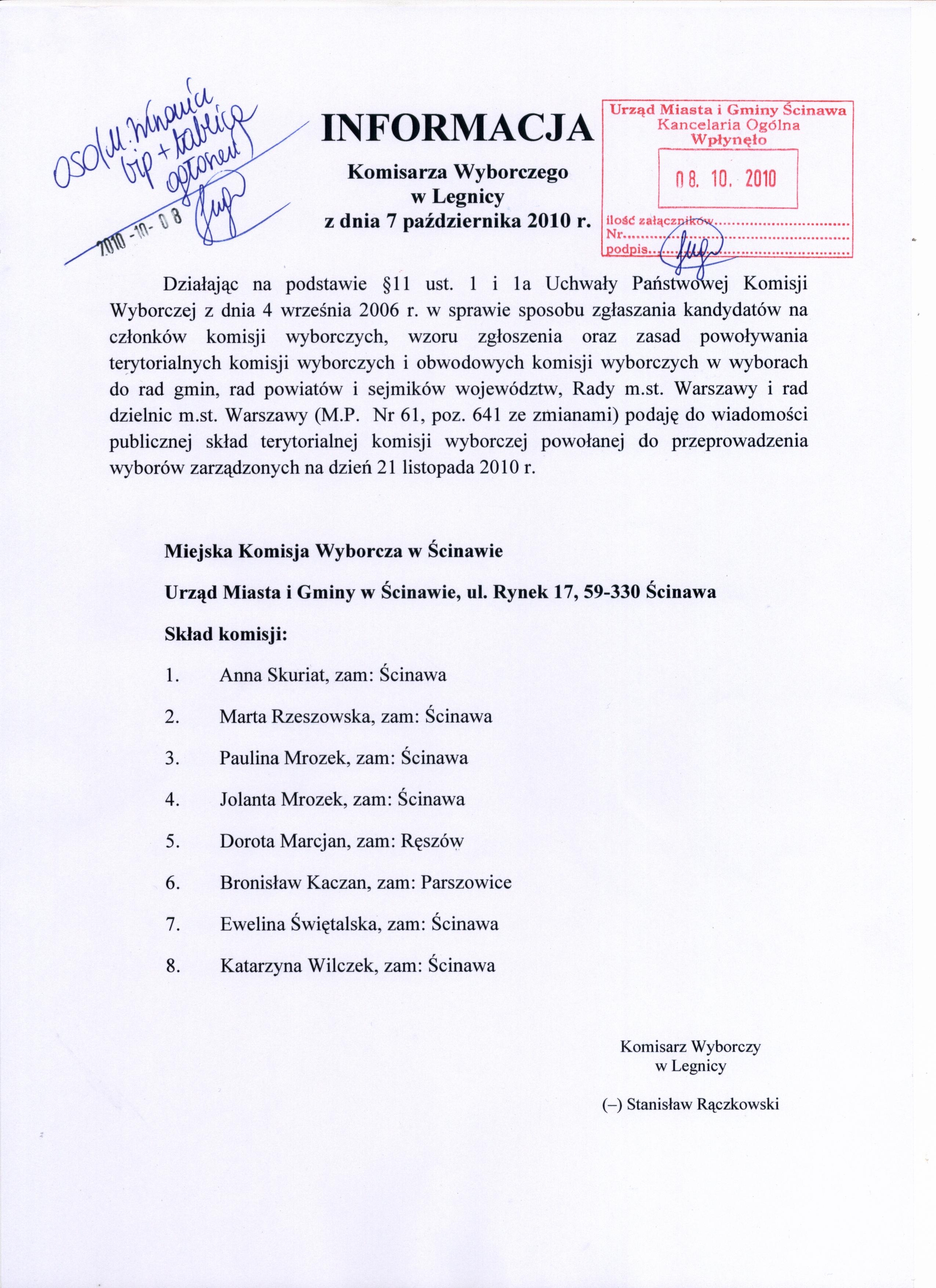 Tytuł dokumentu: | Informacja Krajowego Biura Wyborczego z dnia 7 października 2010 r. - powołanie Miejskiej Komisji Wyborczej. | |