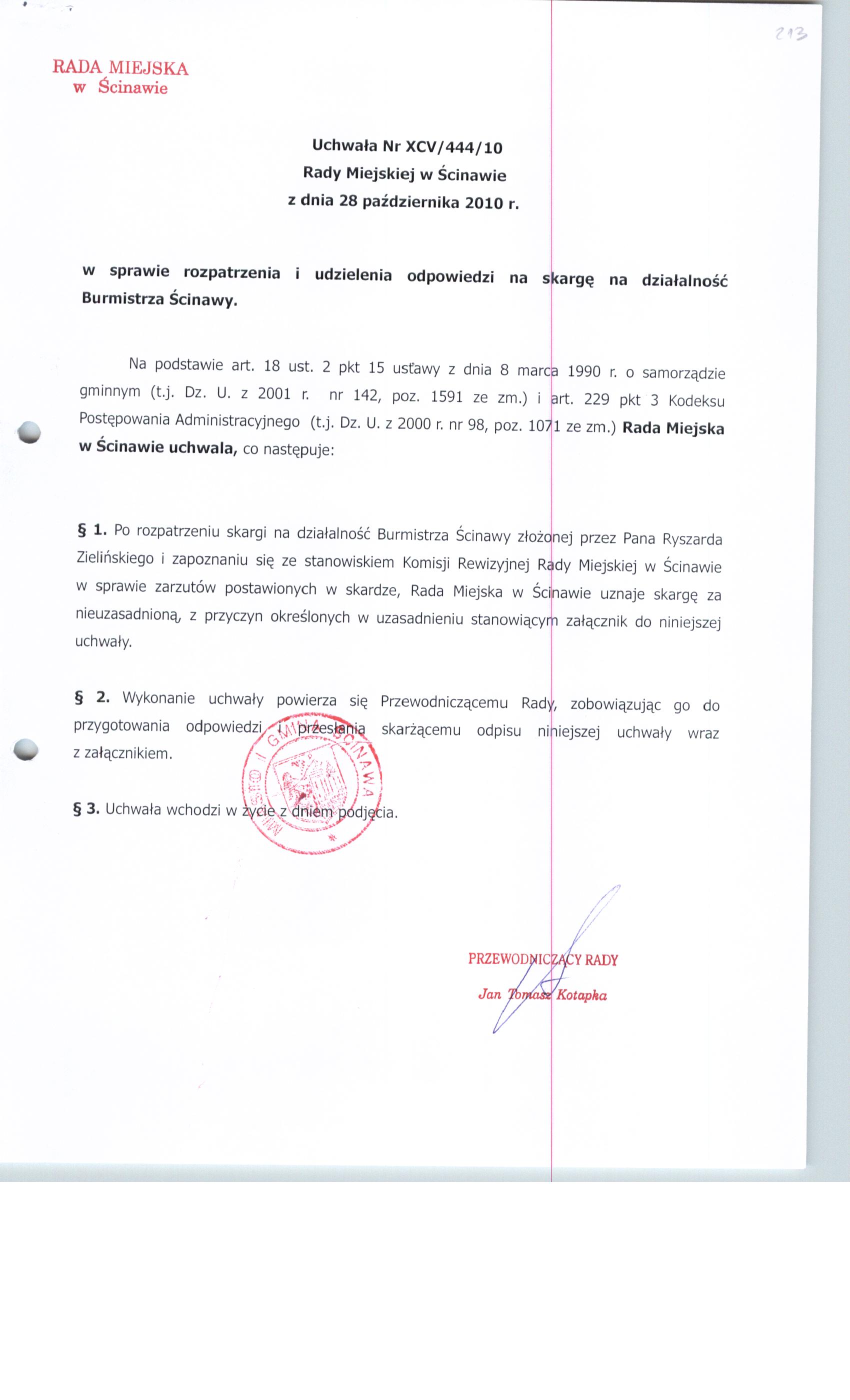 Tytuł dokumentu: | Uchwała nr XCV/444/2010 z dn. 28 października 2010 | |